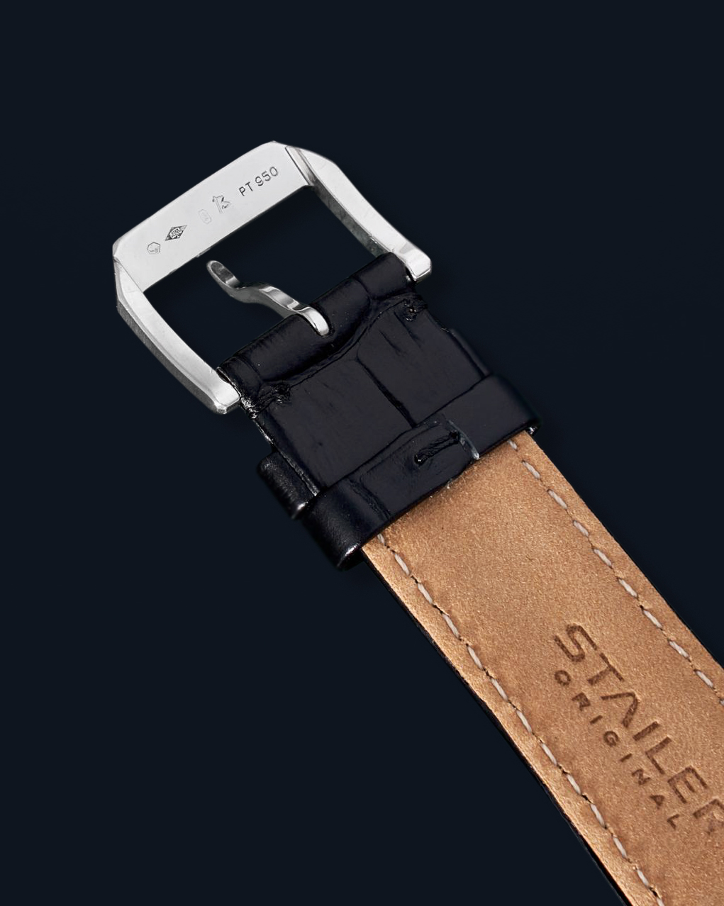 StrapBlack alligator strap, pin buckle in platinum 950, signed IWC