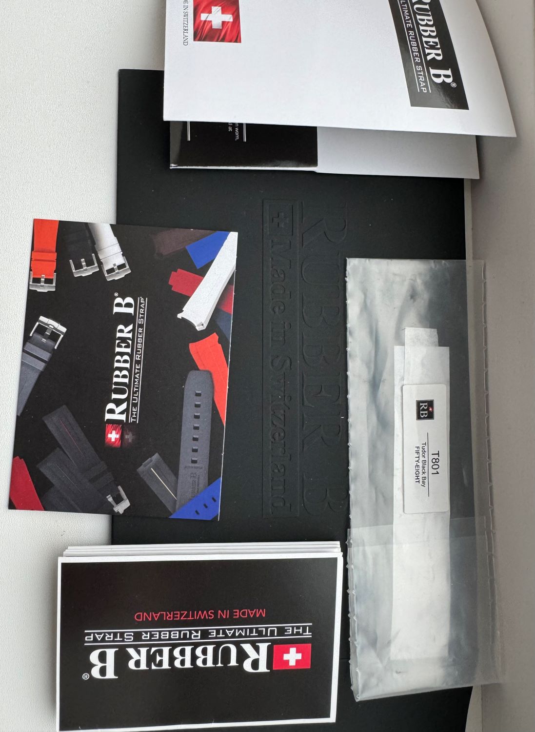 StrapOriginal green RubberB strap, yellow gold custom 18 mm pin buckle