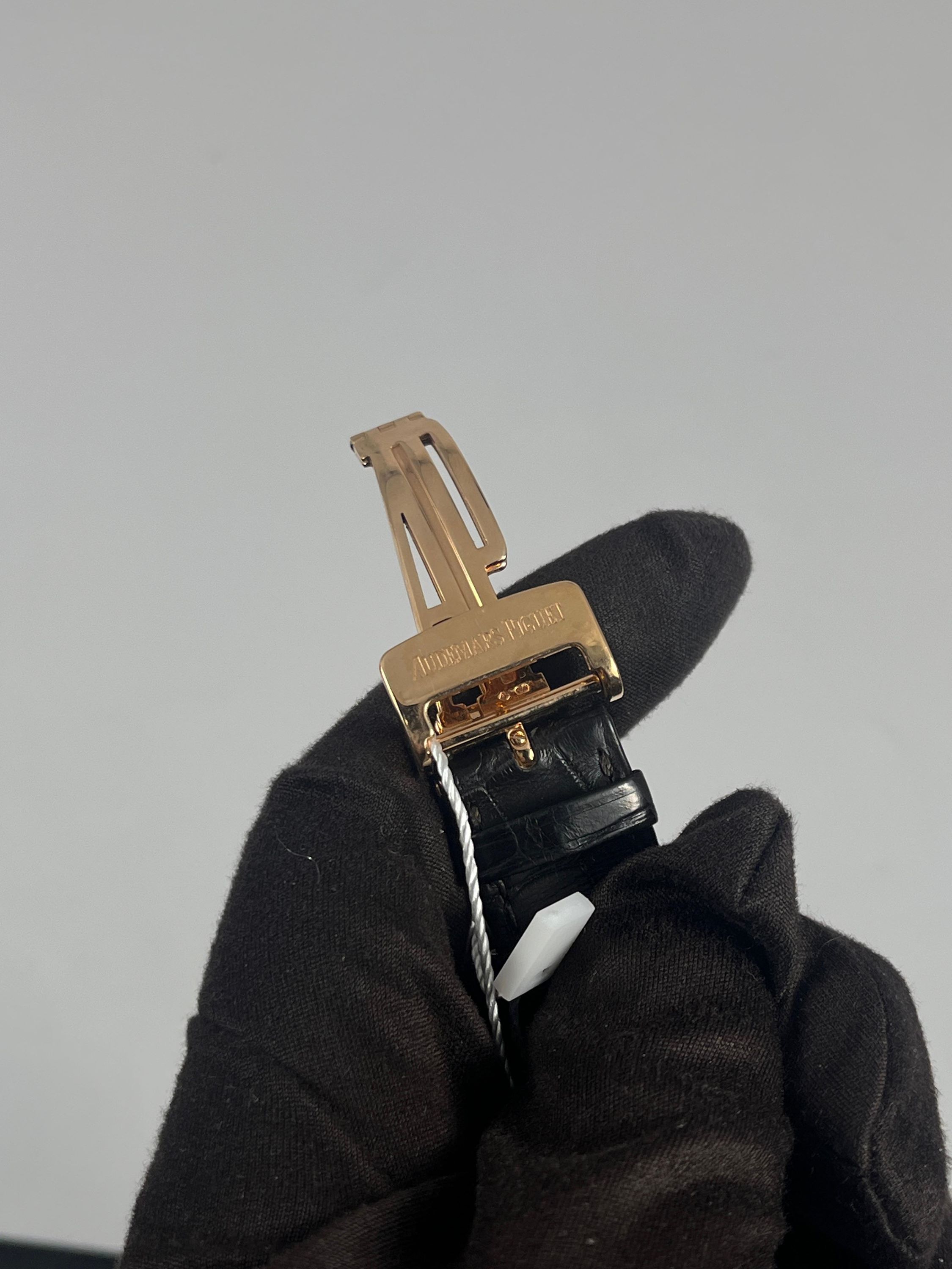 StrapBlack alligator strap, double folding clasp in 18k rose gold
