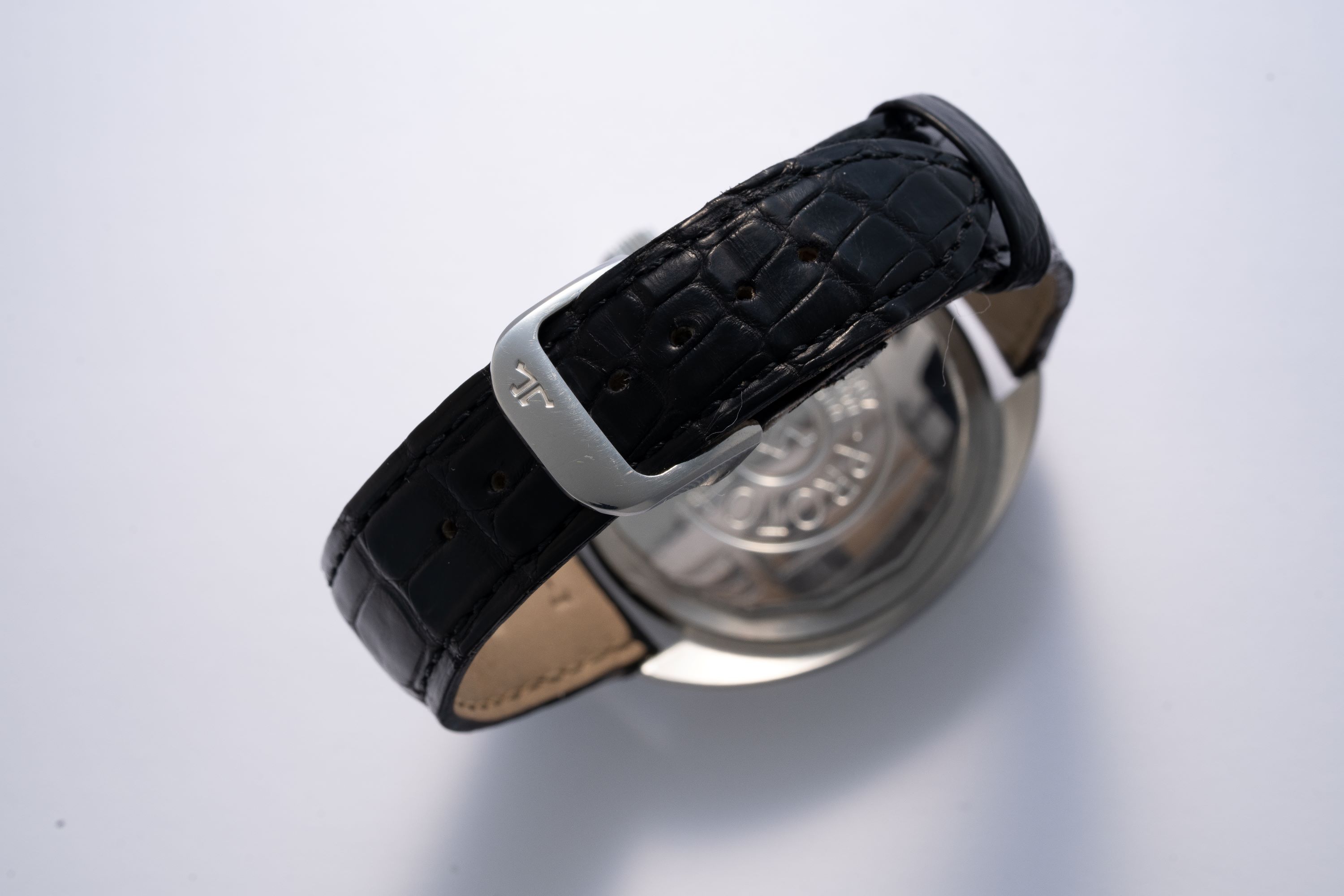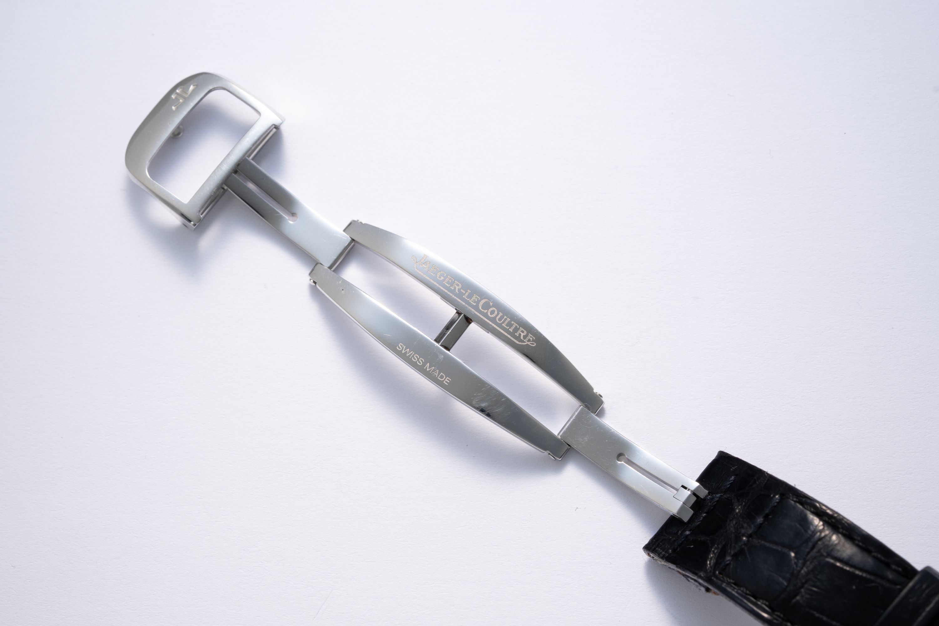 StrapBlack alligator leather strap with JLC butterfly deployant clasp