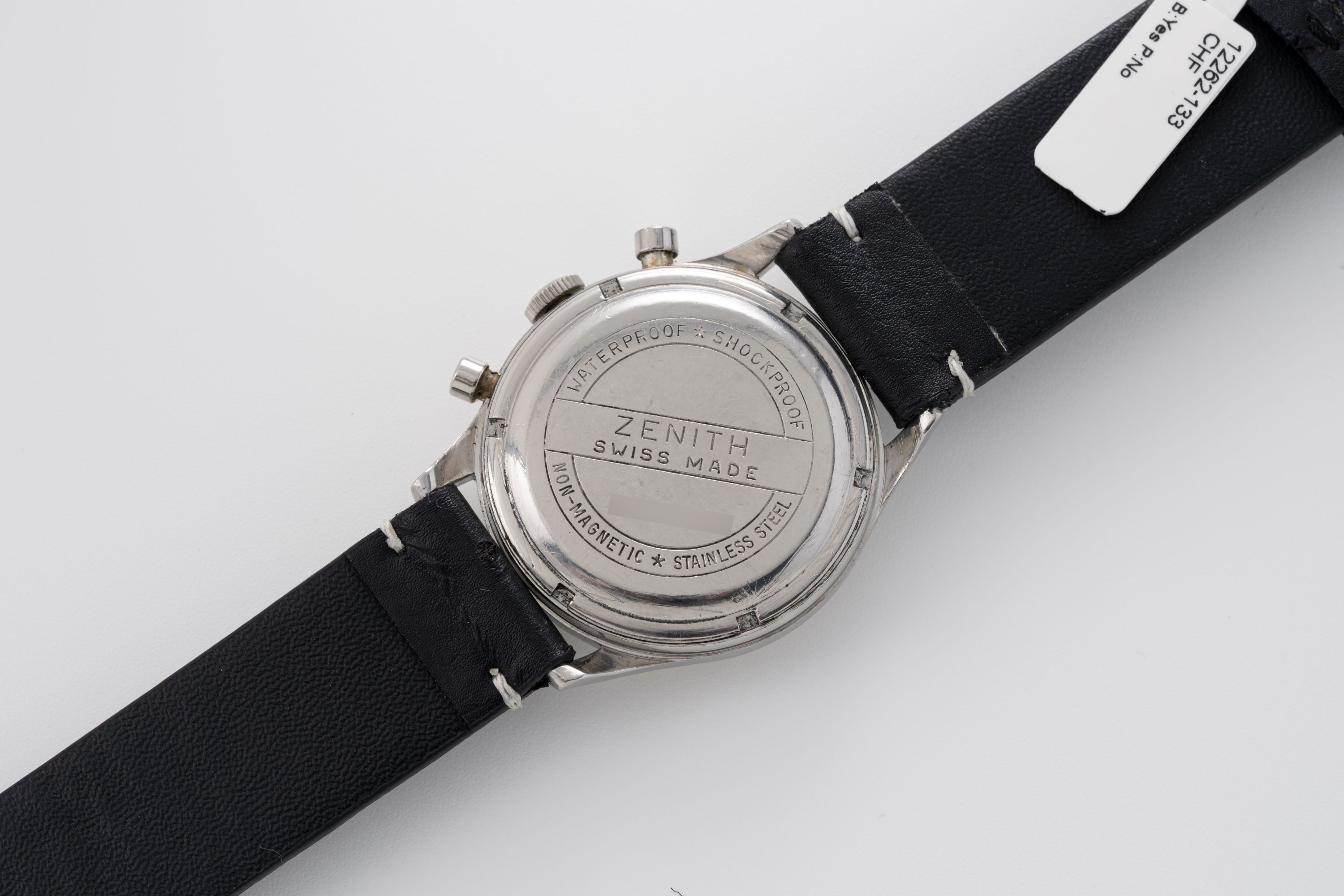 DialSilver-white dial with applied indices, heat-blued hands, small seconds at 9 o'clock, 45 minute chronograph counter at 3 o'clock, signed 'Zenith' at 12 o'clock