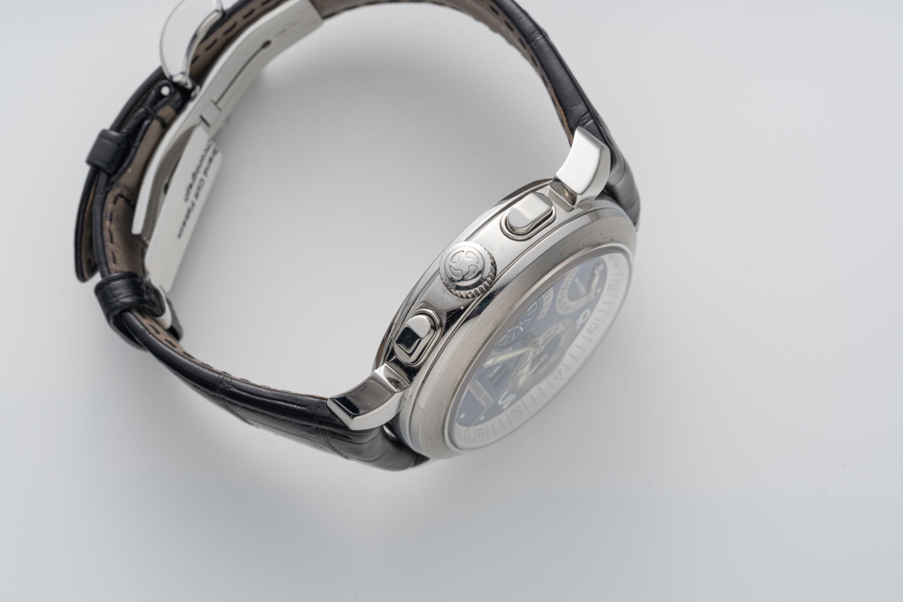 StrapBlack alligator leather strap with original stainless steel butterfly deployant clasp