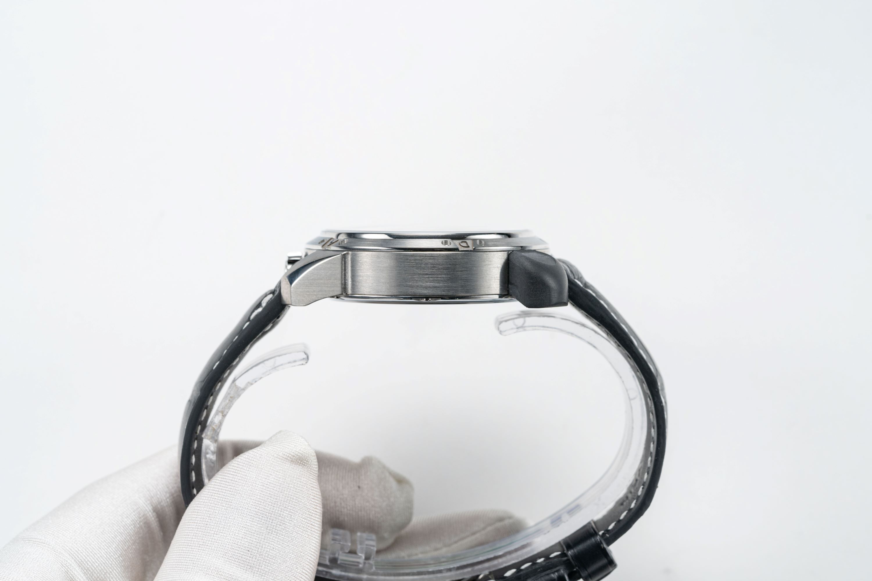 CaseTitanium; upper lugs made of black carbon-fiber composite; titanium caseback with sapphire window secured by 6 screws
