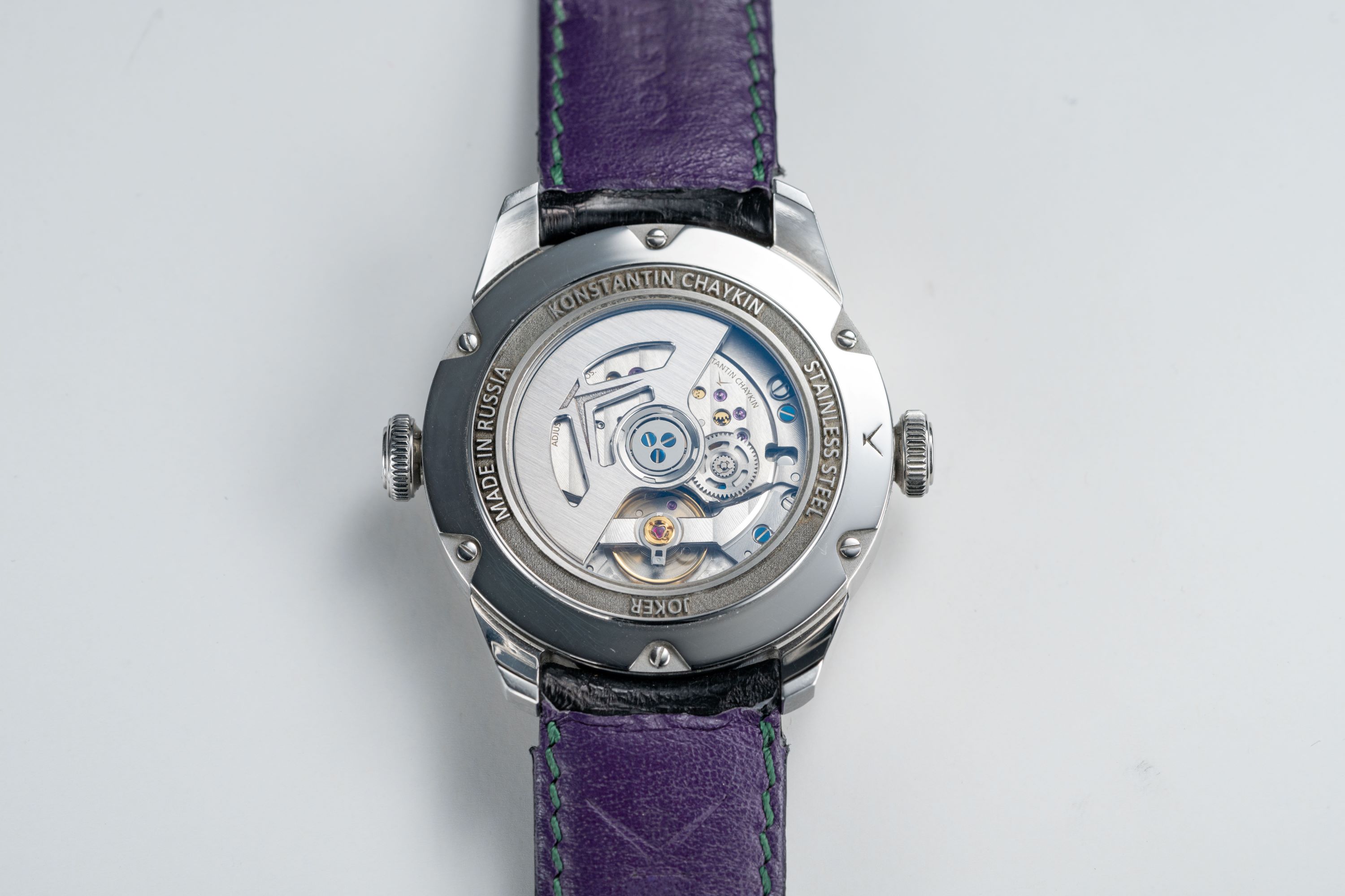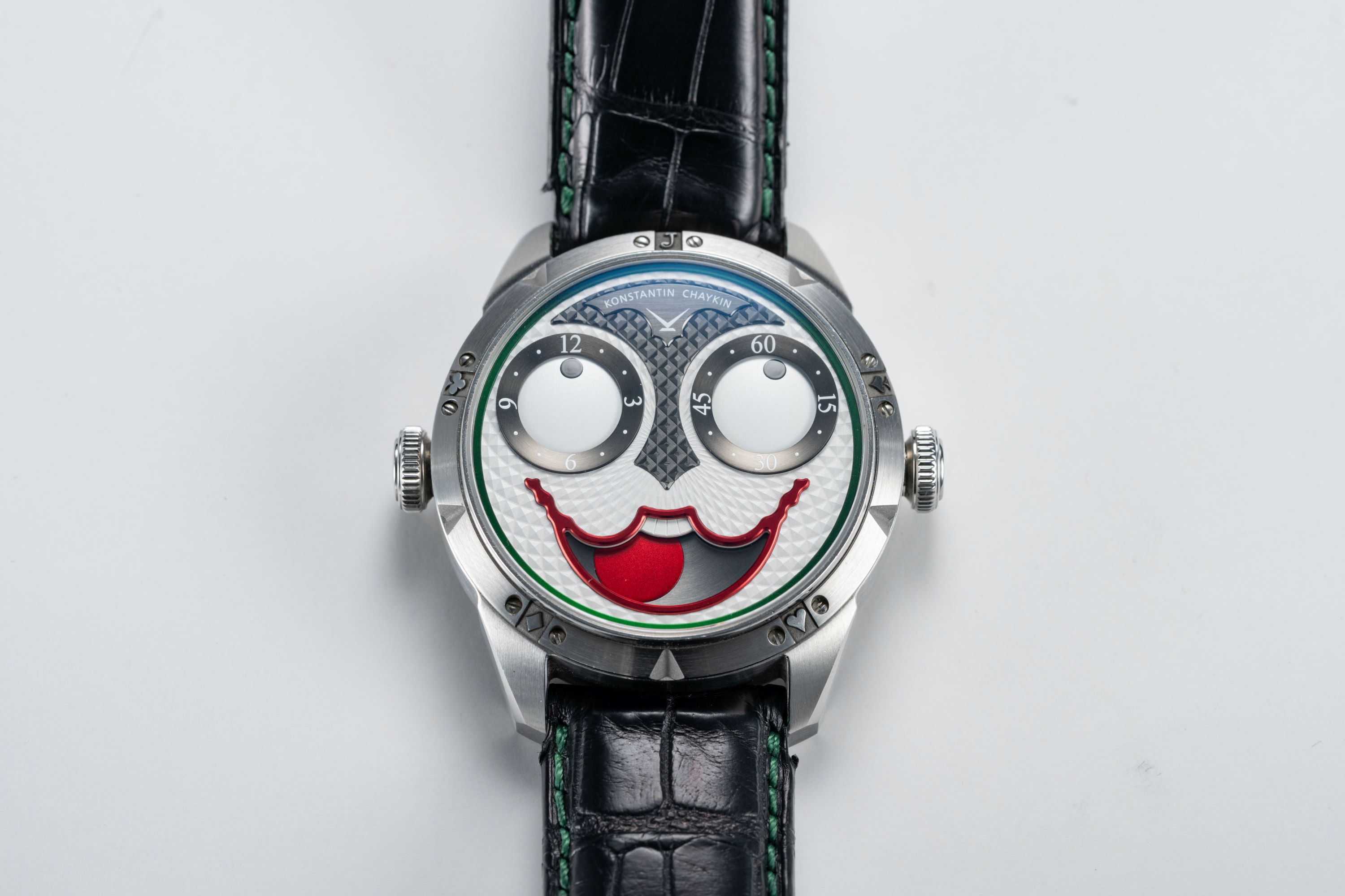 The new model features a more elegant 40 mm steel case and a refined bezel engraved in the brand's tradition with the letter “J” and playing card suits. Another important distinction is the “big-eyed” character of the Wristmon: Konstantin Chaykin retained the previous size of the disc indicators for hours and minutes despite the smaller dial area, making the eyes even more prominent.