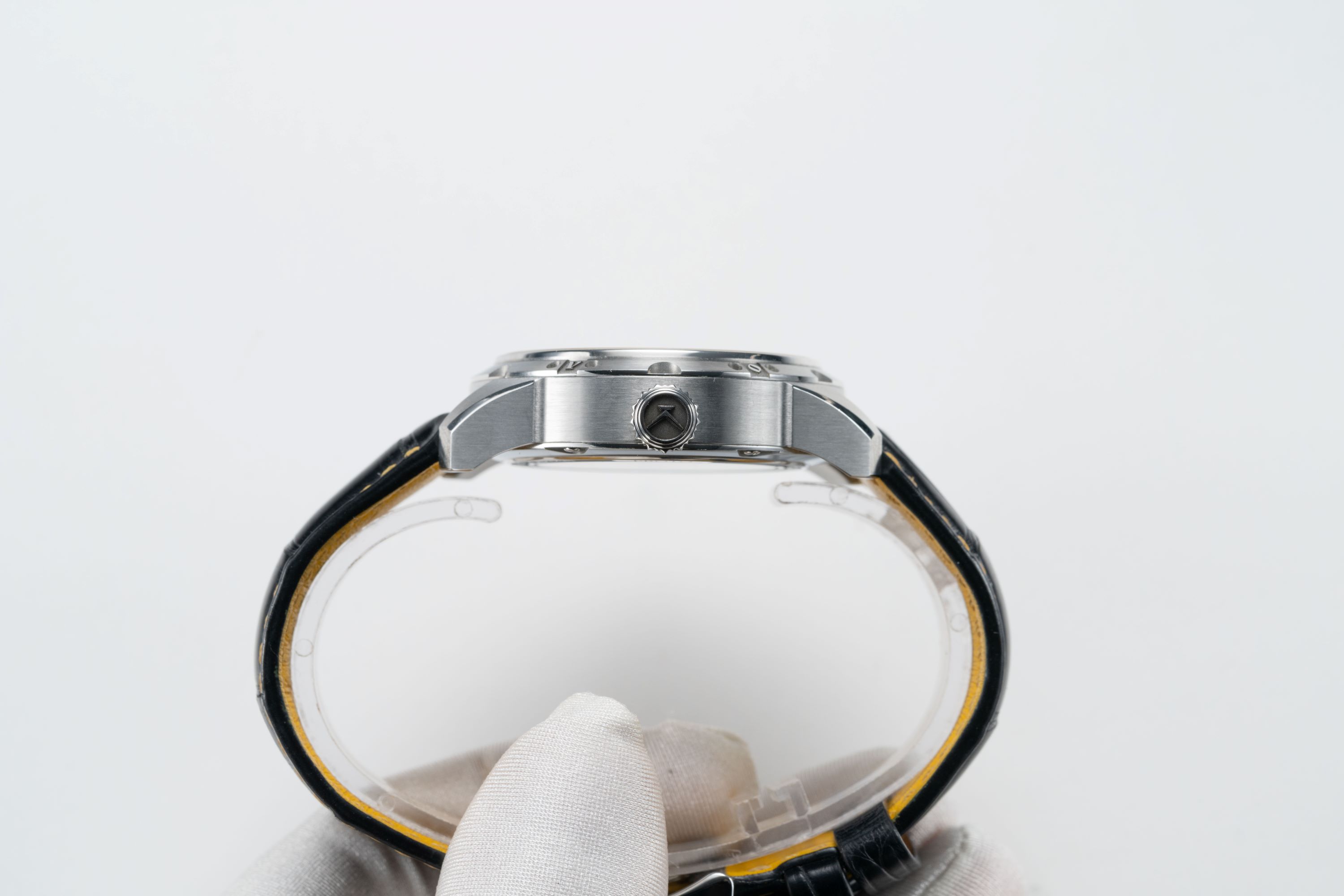 Case40mm diameter x 12.2mm thickness - stainless steeel case, 43 parts, notched bezel with 12 screws, brushed and polished - sapphire crystal dial side - see-through caseback secured by 6 screws