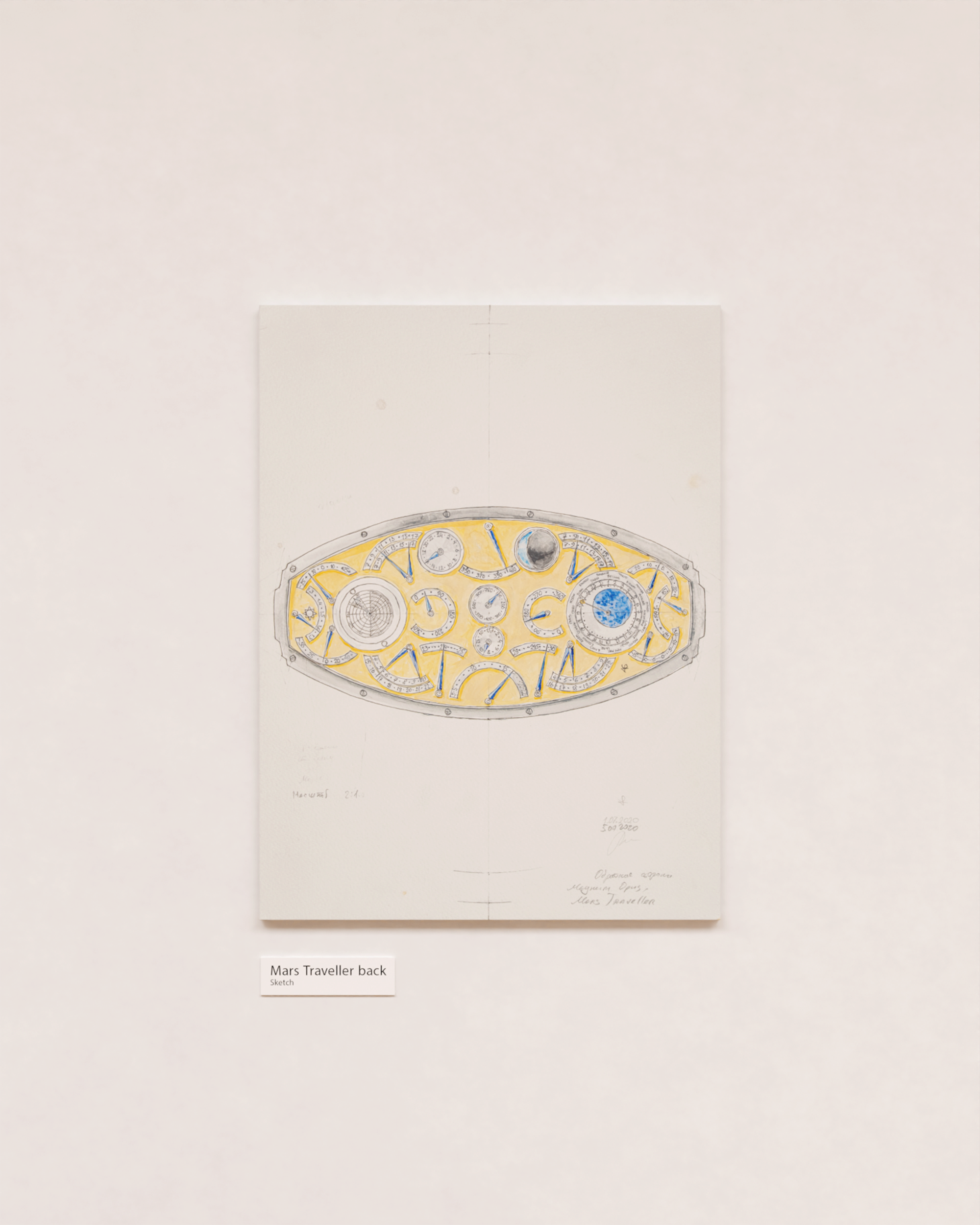 Sketch of the Magnum Opus Mars Traveller Watch (Reverse Side), 24 × 32 cm