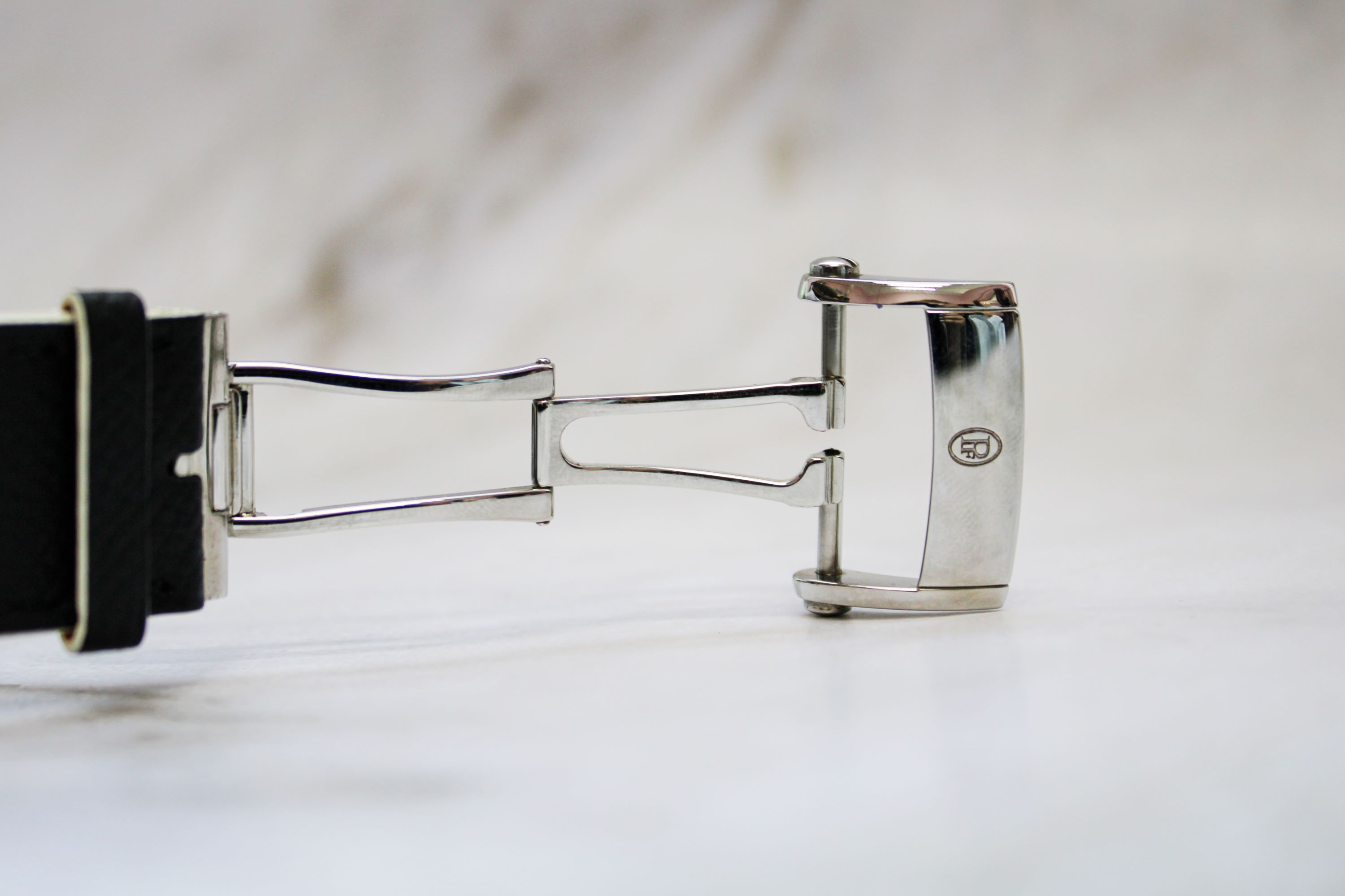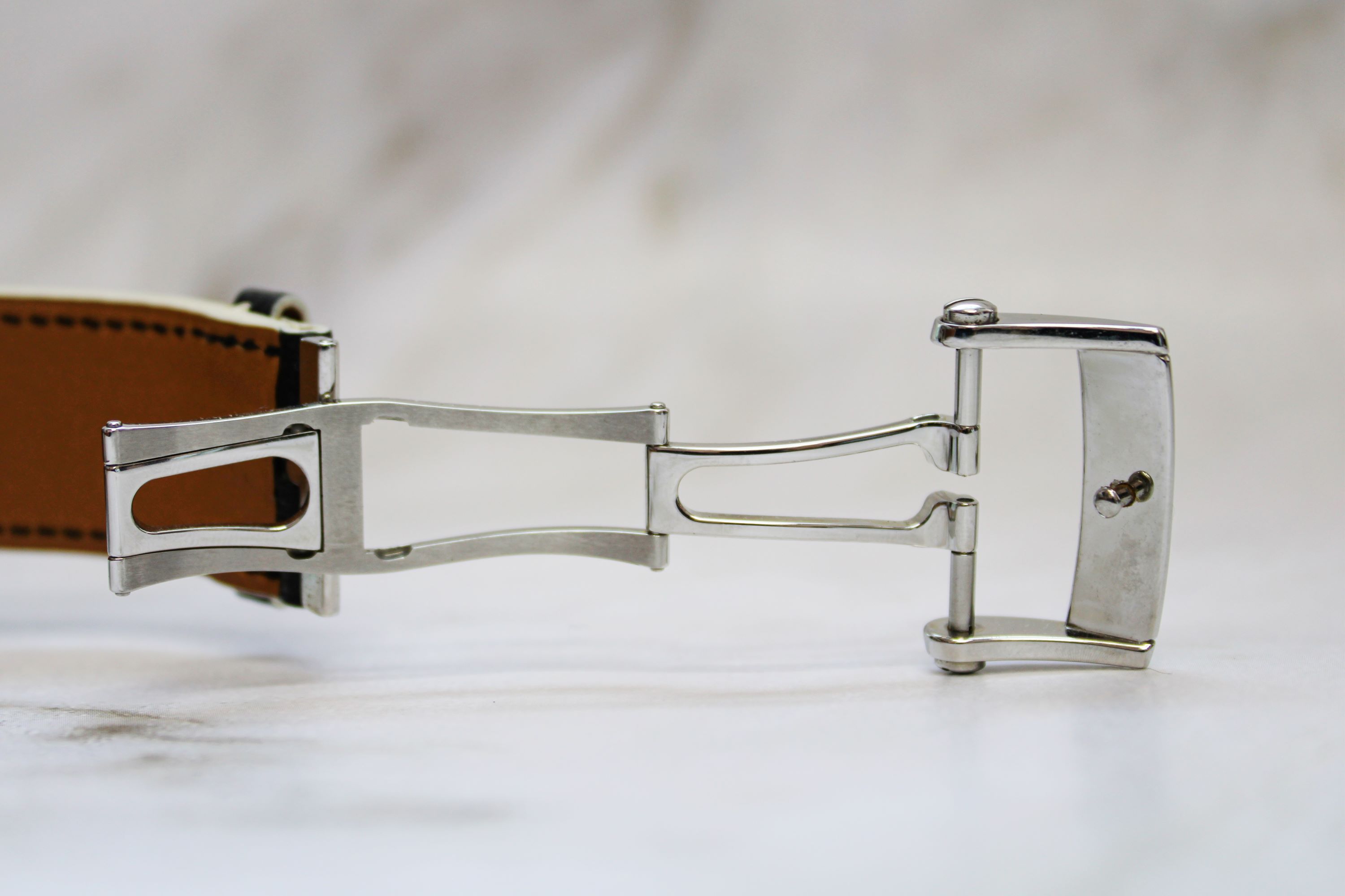 StrapBlack leather strap by Hermes, folding clasp in stainless steel