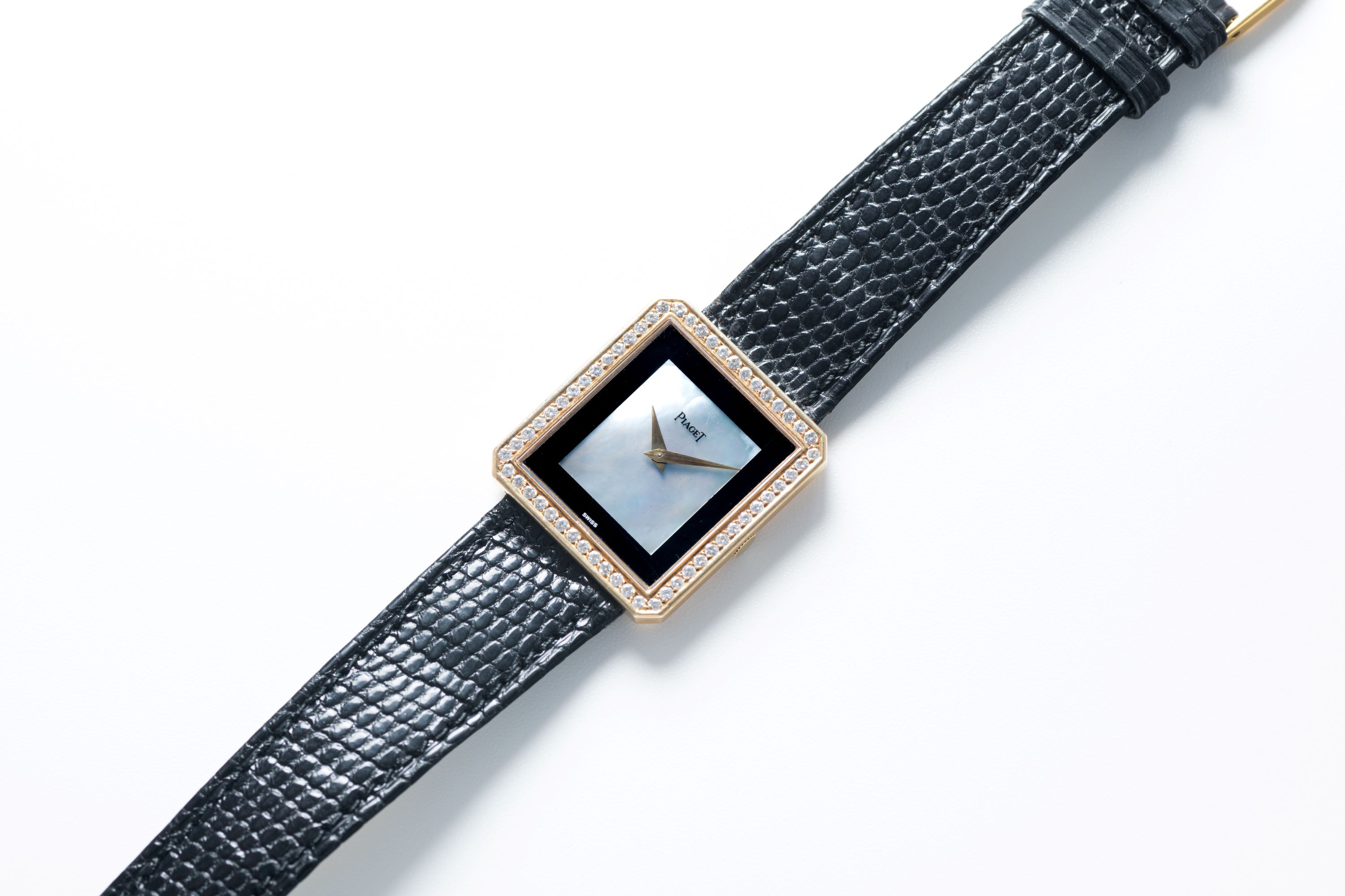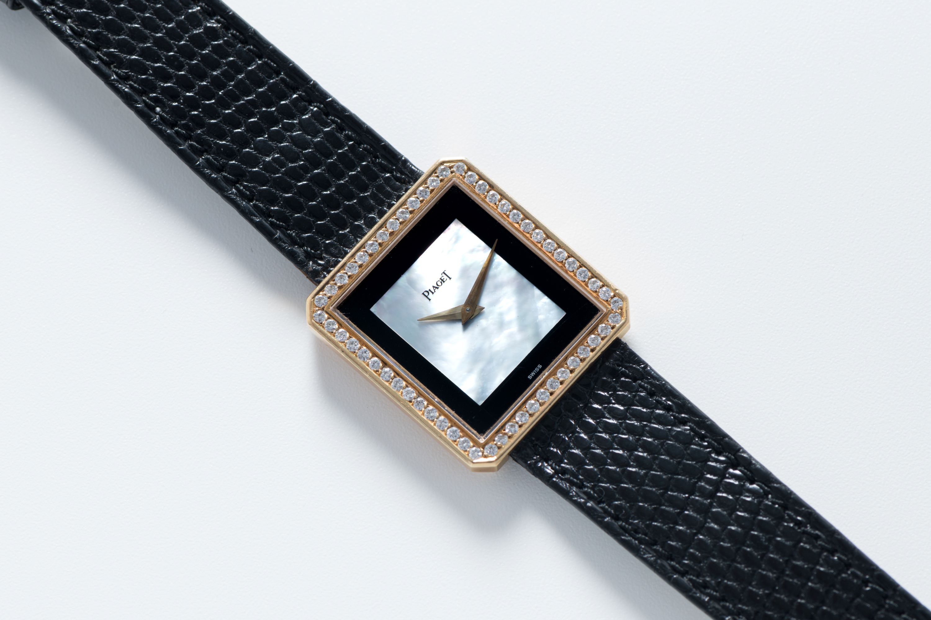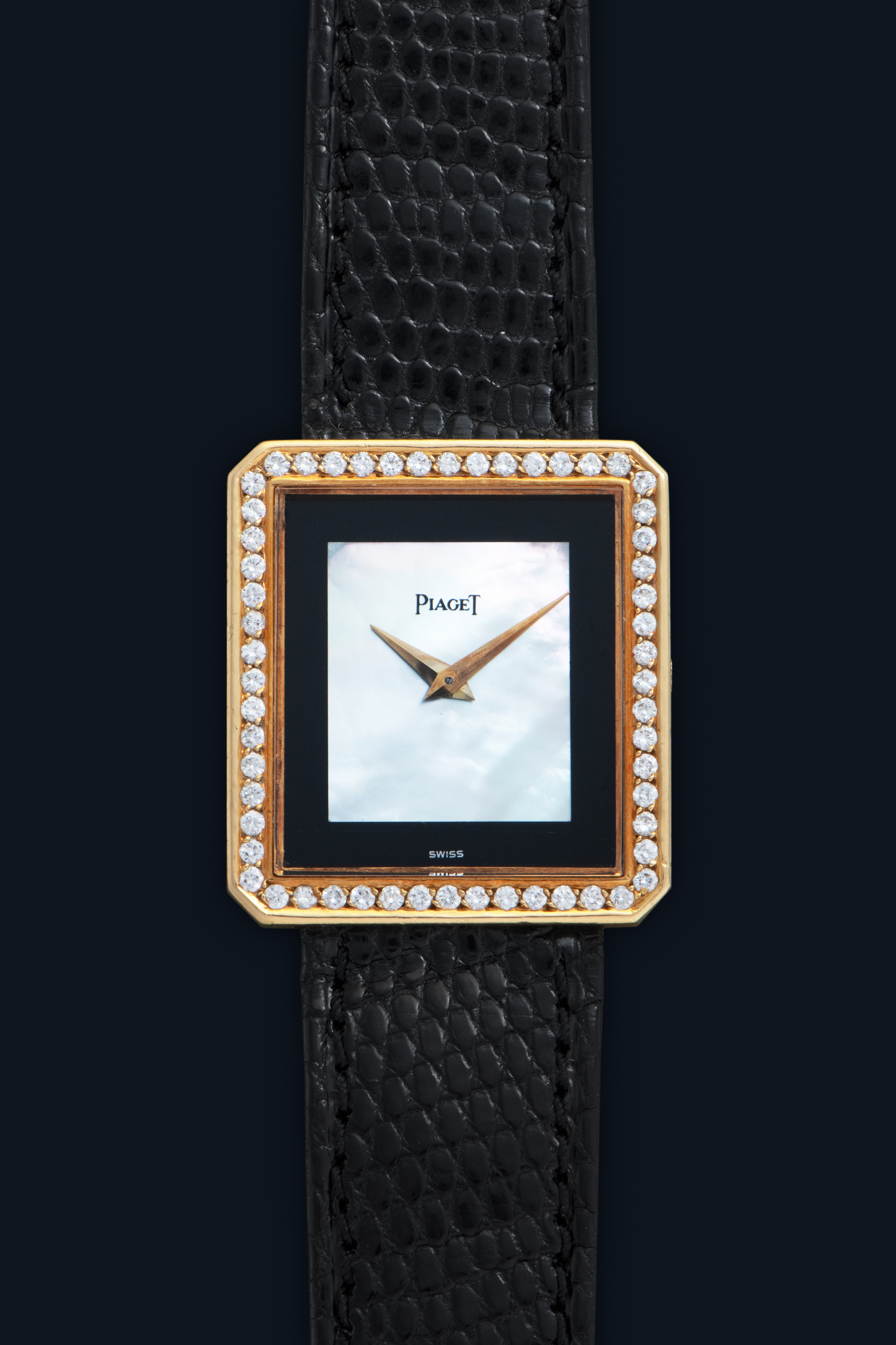 DialOnyx dial with Mother of Pearl center part, gold dauphine hands, signed 'Piaget' at 12 o'clock
