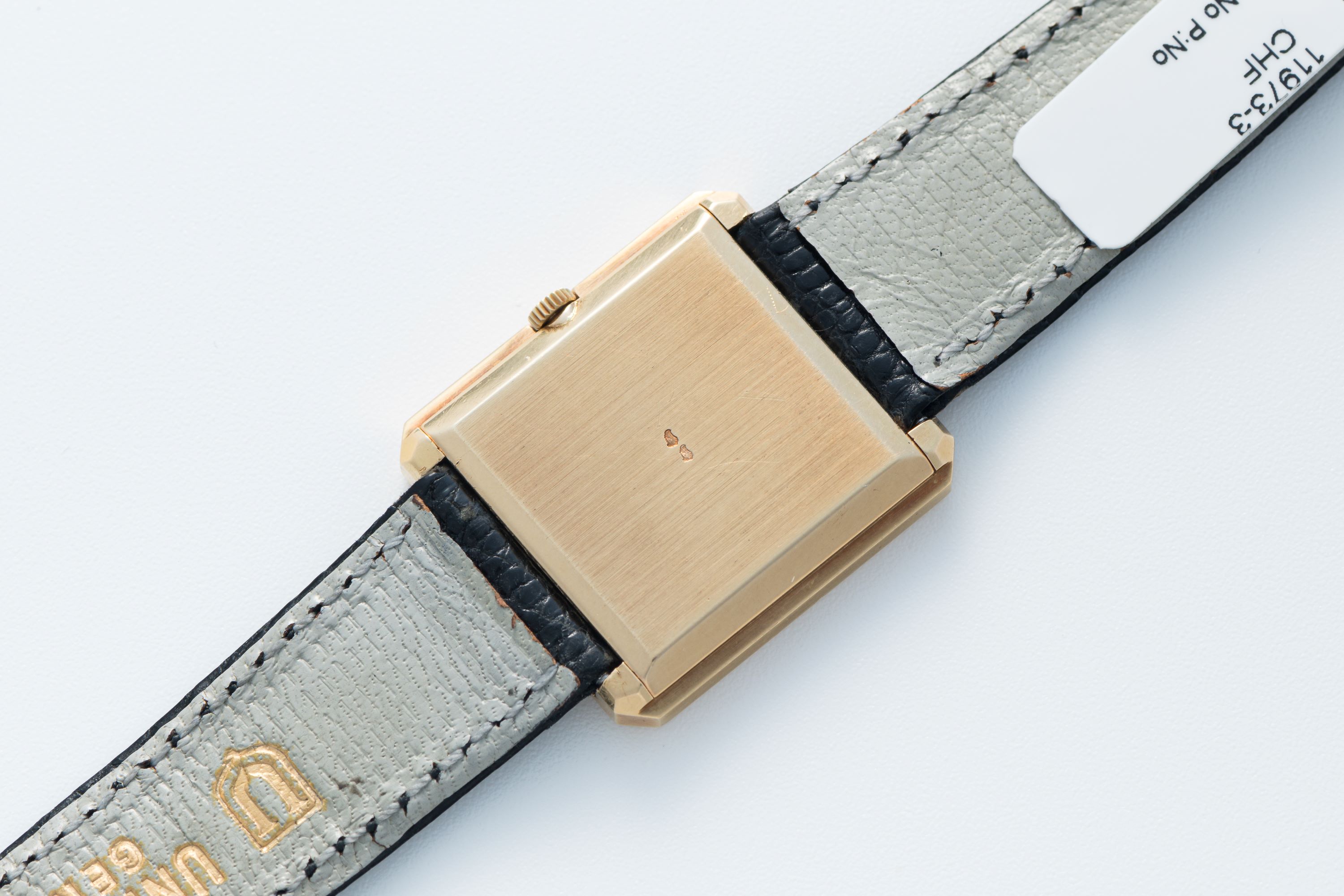 CaseRectancular case with cut-off edges, crown at 3 o'clock, solid caseback