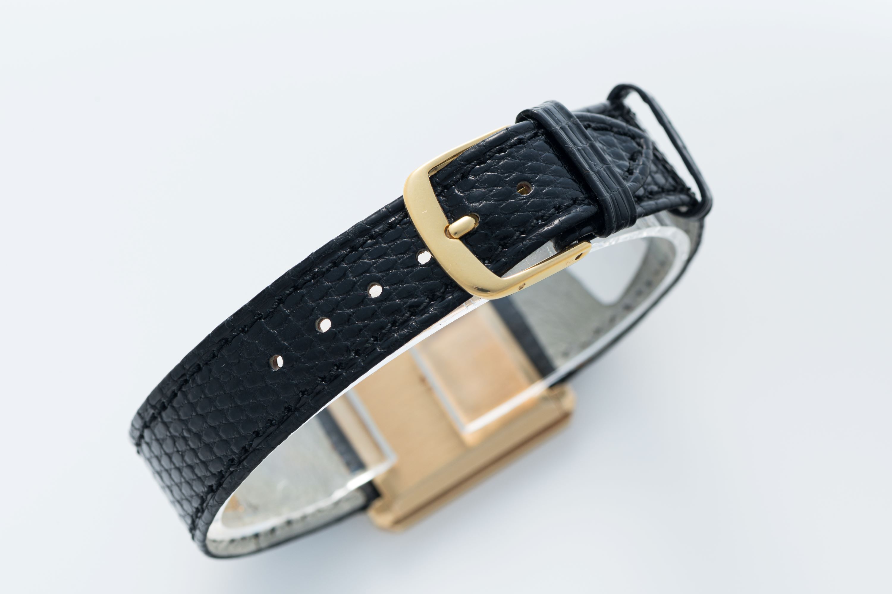 StrapBlack lizard strap with gold-plated pin buckle
