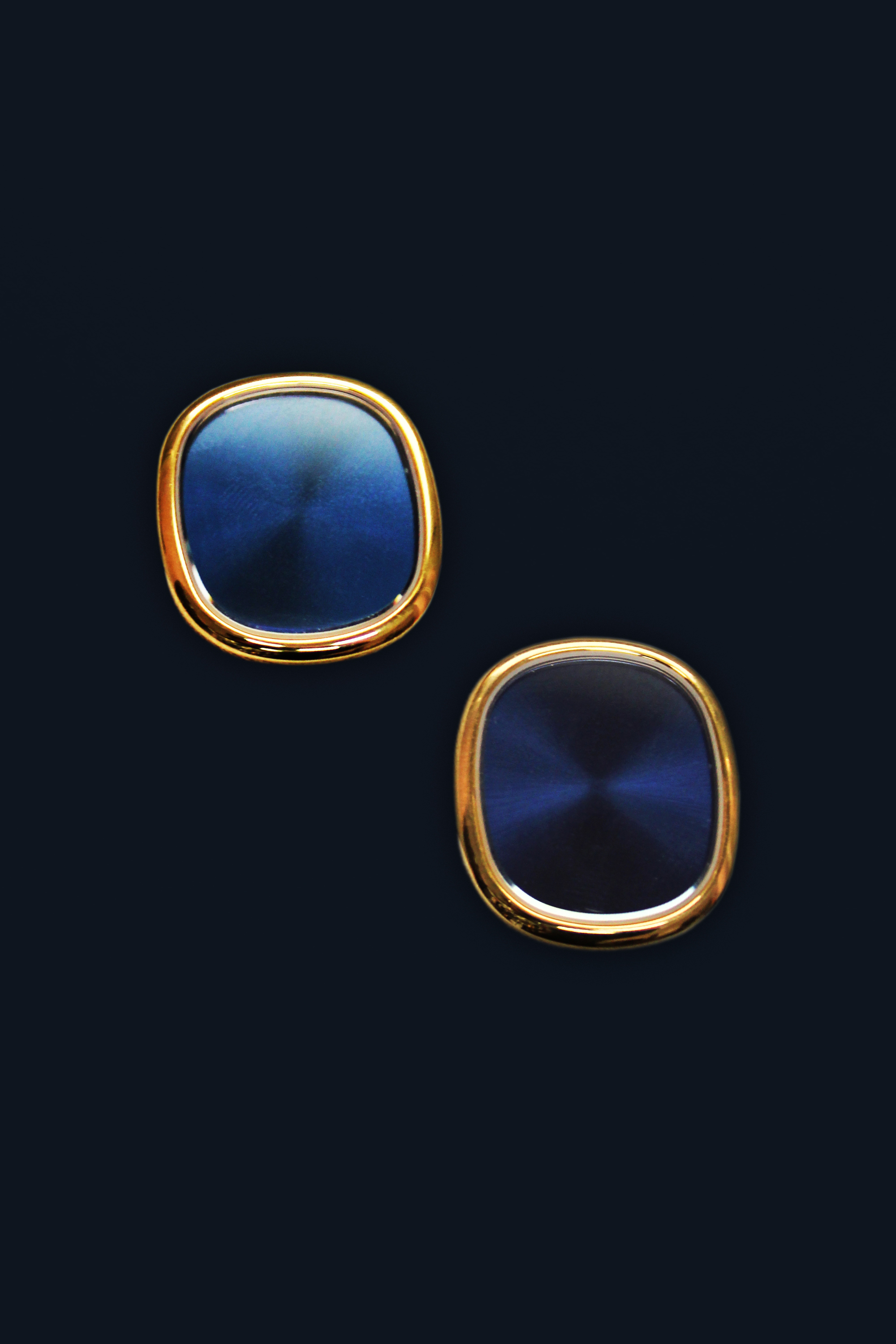 CaseGolden Ellipse styled rounded cushion-shaped cufflinks in 18k yellow gold, sunburst blue center, back stamped with “Patek Philippe Geneve Swiss”, total weight 26.85 g