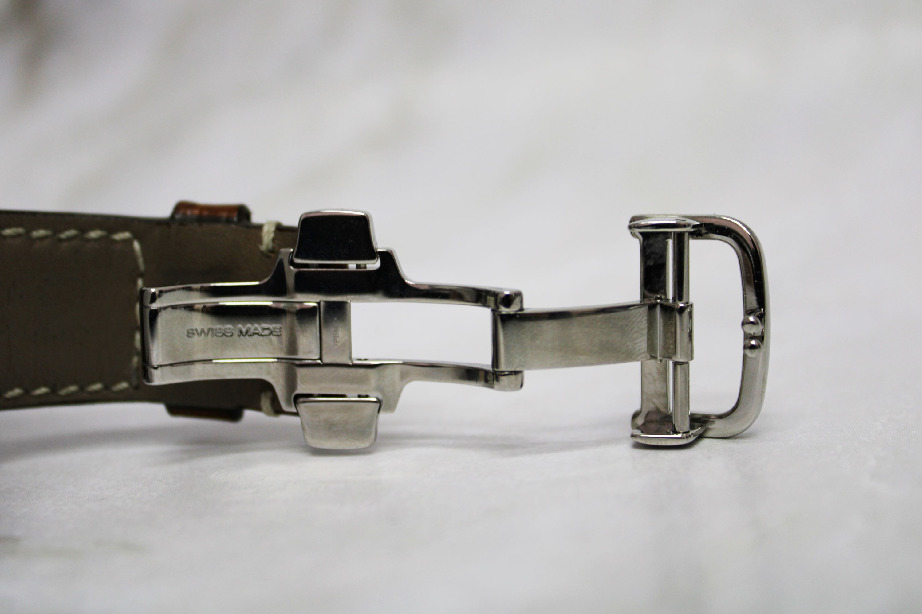 CaseCushion-shaped case in stainless steel, solid steel caseback, winding crown at 4 o’clock, crown at 2 o’clock to set 24-hour dial flange