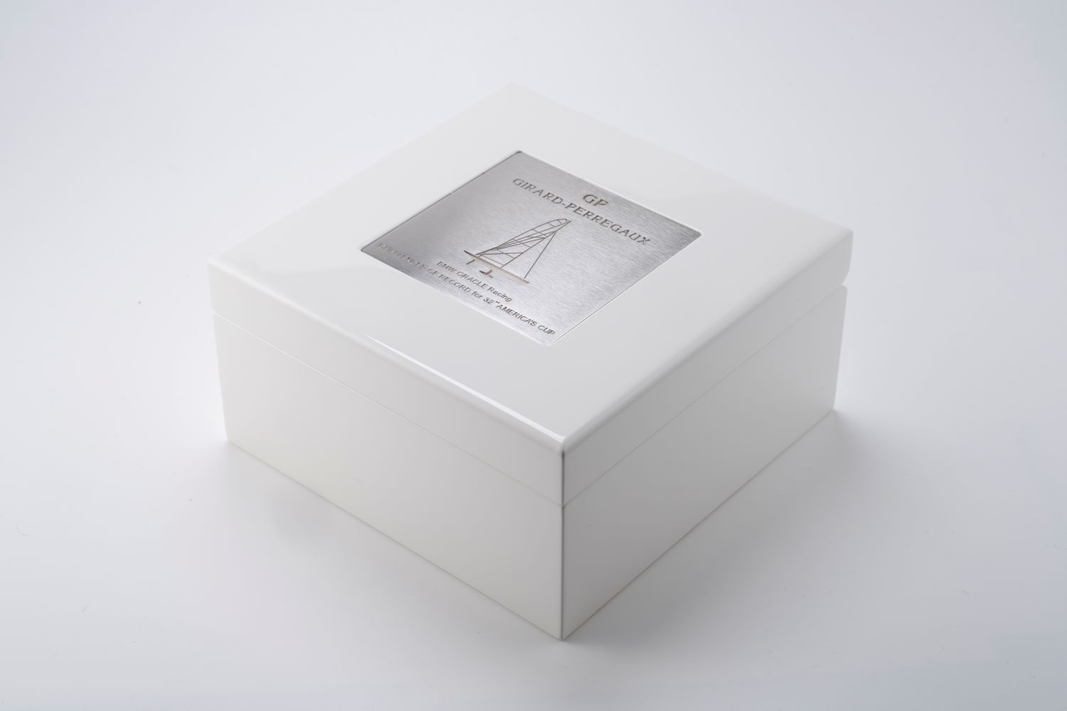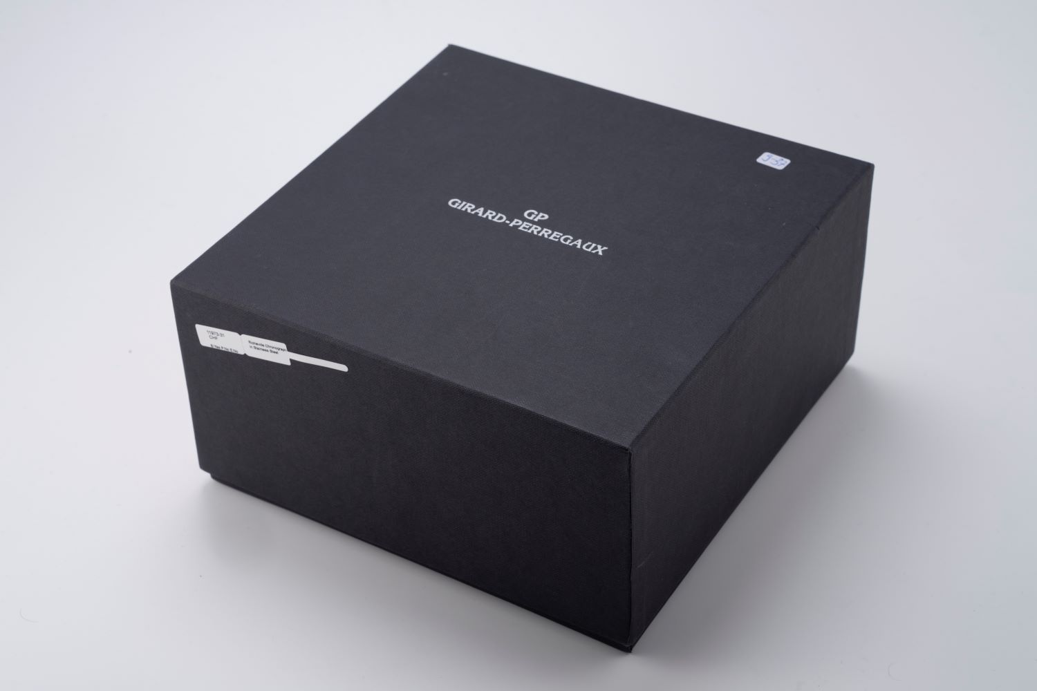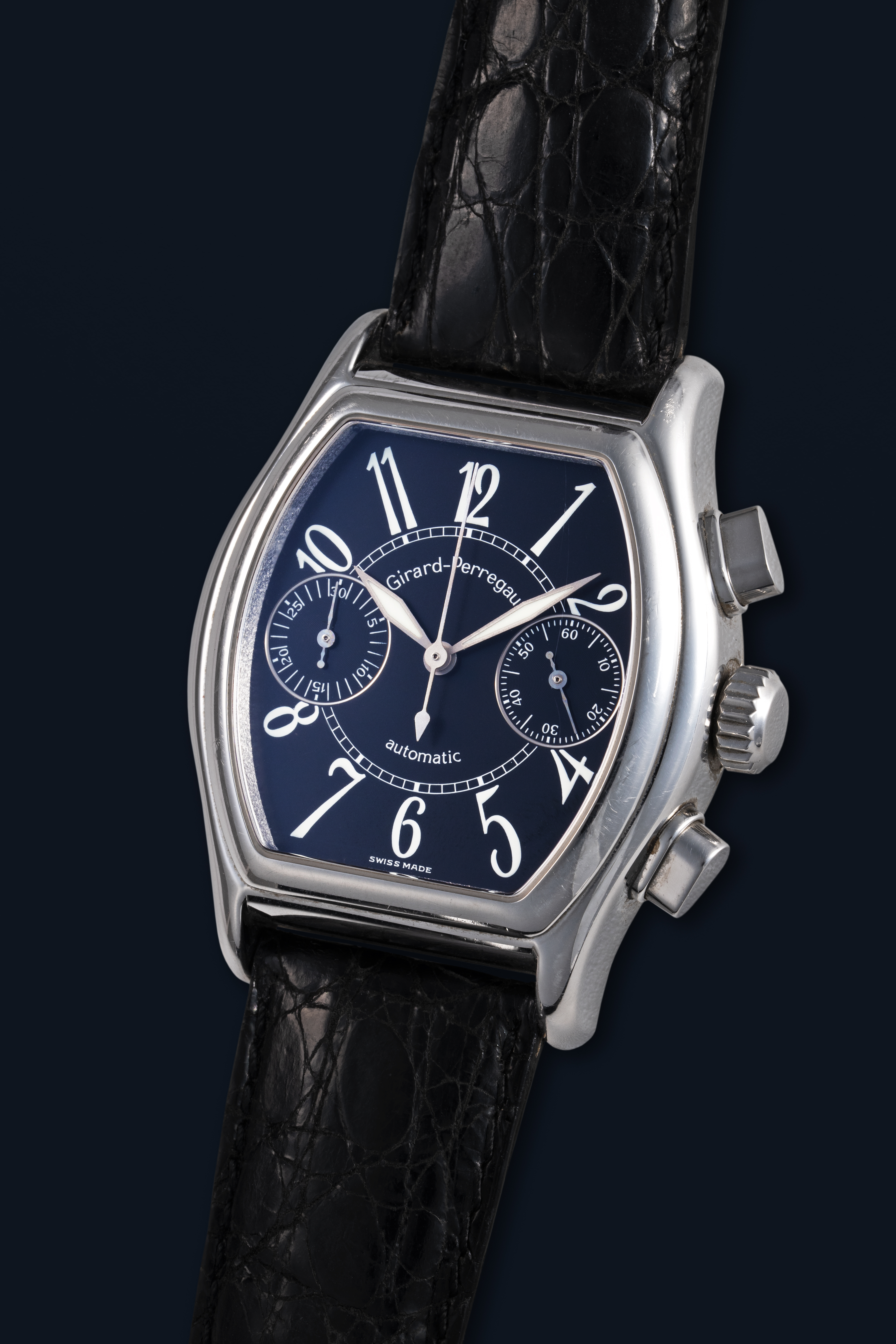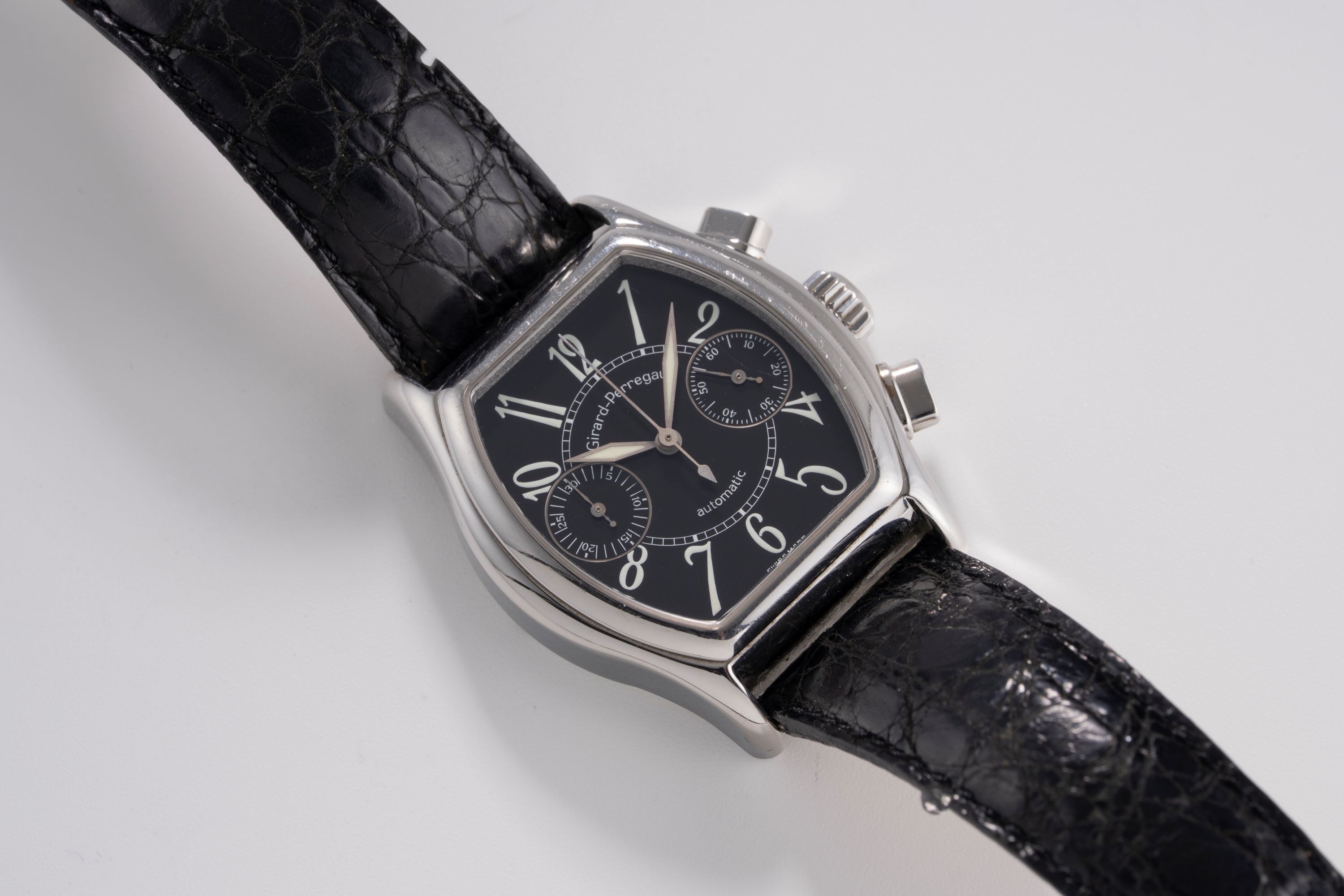 DialBlack dial with large luminous numerals, luminous leaf hands, small seconds at 3 o'clock, 30 minute chronograph counter at 9 o'clock, sigend 'Girard-Perregaux' at 12 o'clock