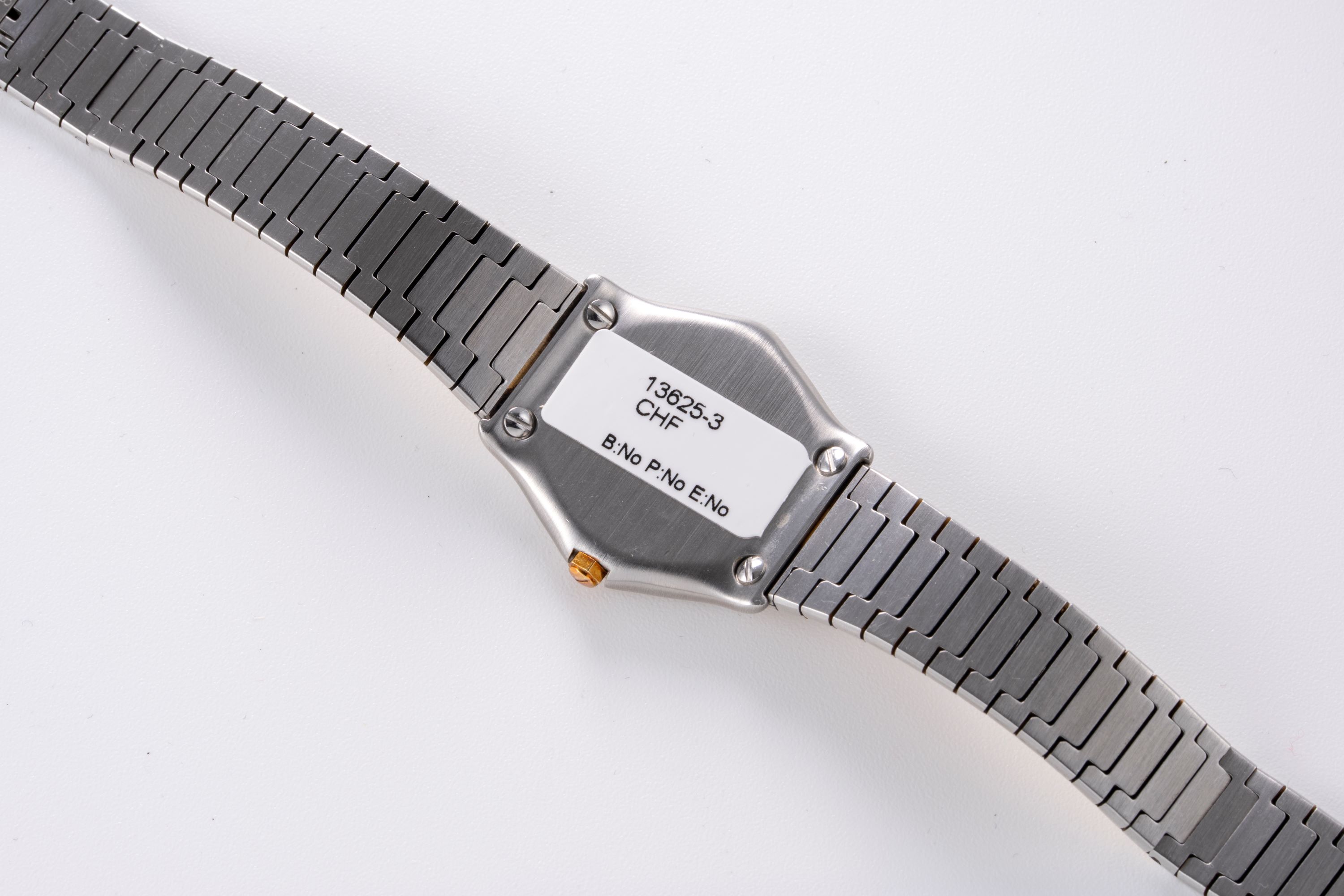 CaseRounded hexagonal case in stainless steel, 18k yellow gold bezel, crown at 3 o'clock