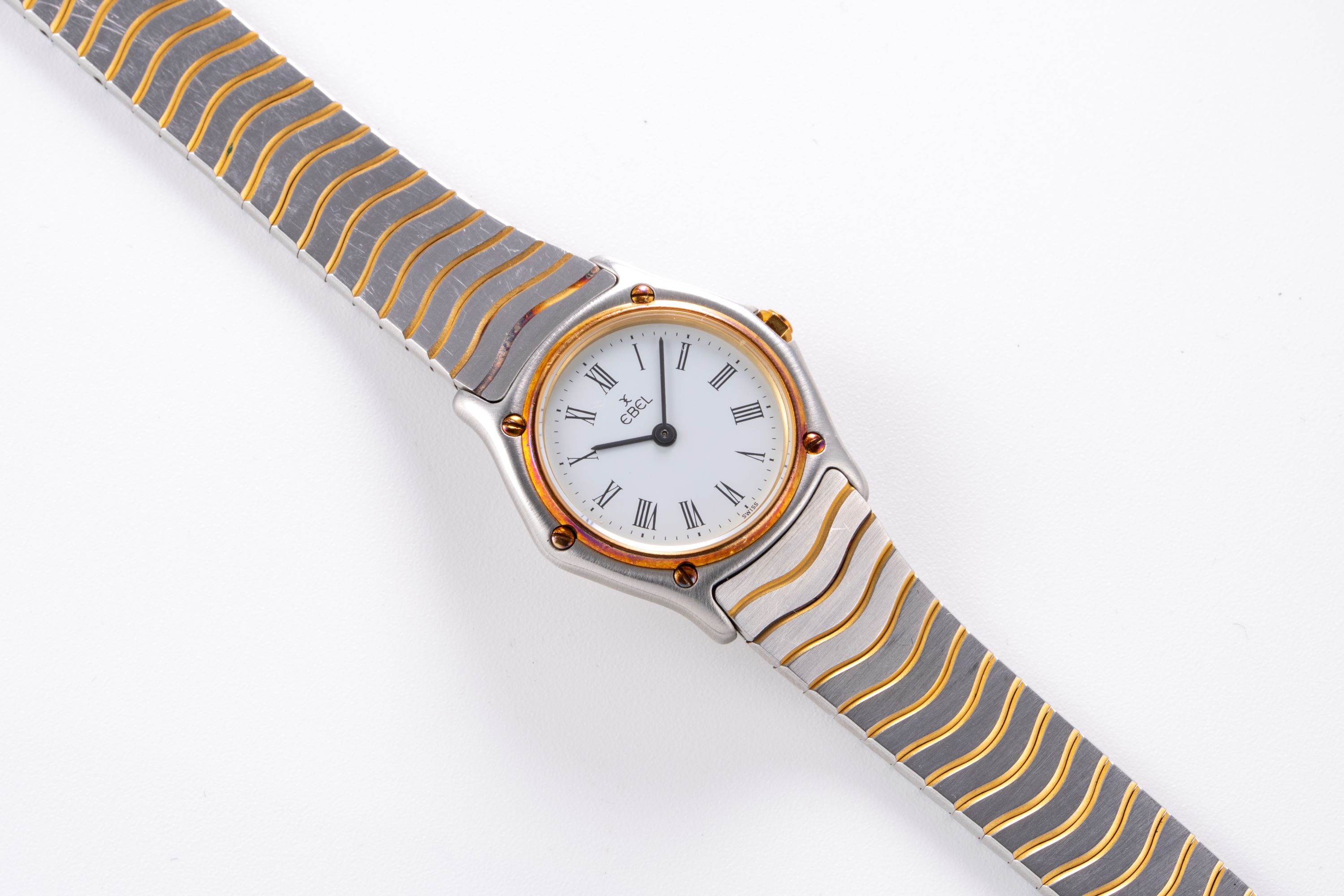 BraceletFitted Ebel wave bracelet in stainless steel and gold plated steel, jewelry clasp, maximum wrist circumference: 16cm