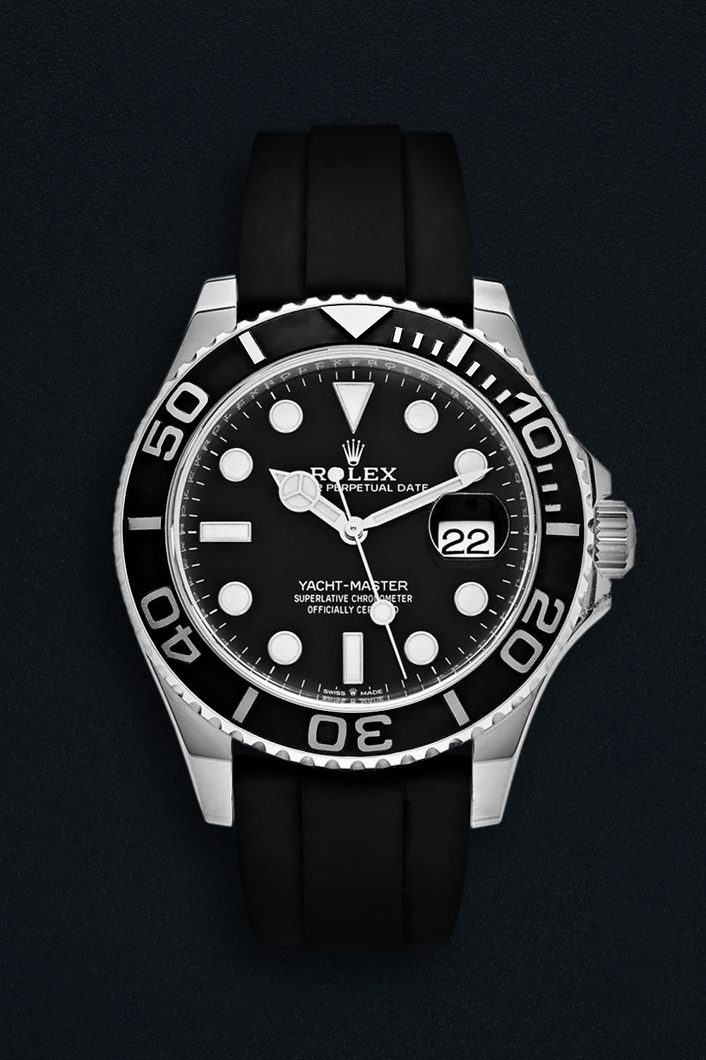 StrapBlack Oysterflex strap made from flexible metal blades overmoulded with high-performance elastomer, folding Oysterlock buckle with glidelock extension system