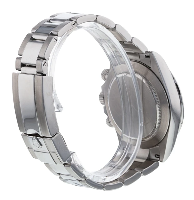 CaseSmooth stainless steel bezel with a tachymeter engraving and a sapphire crystal. The case diameter is 40 mm.