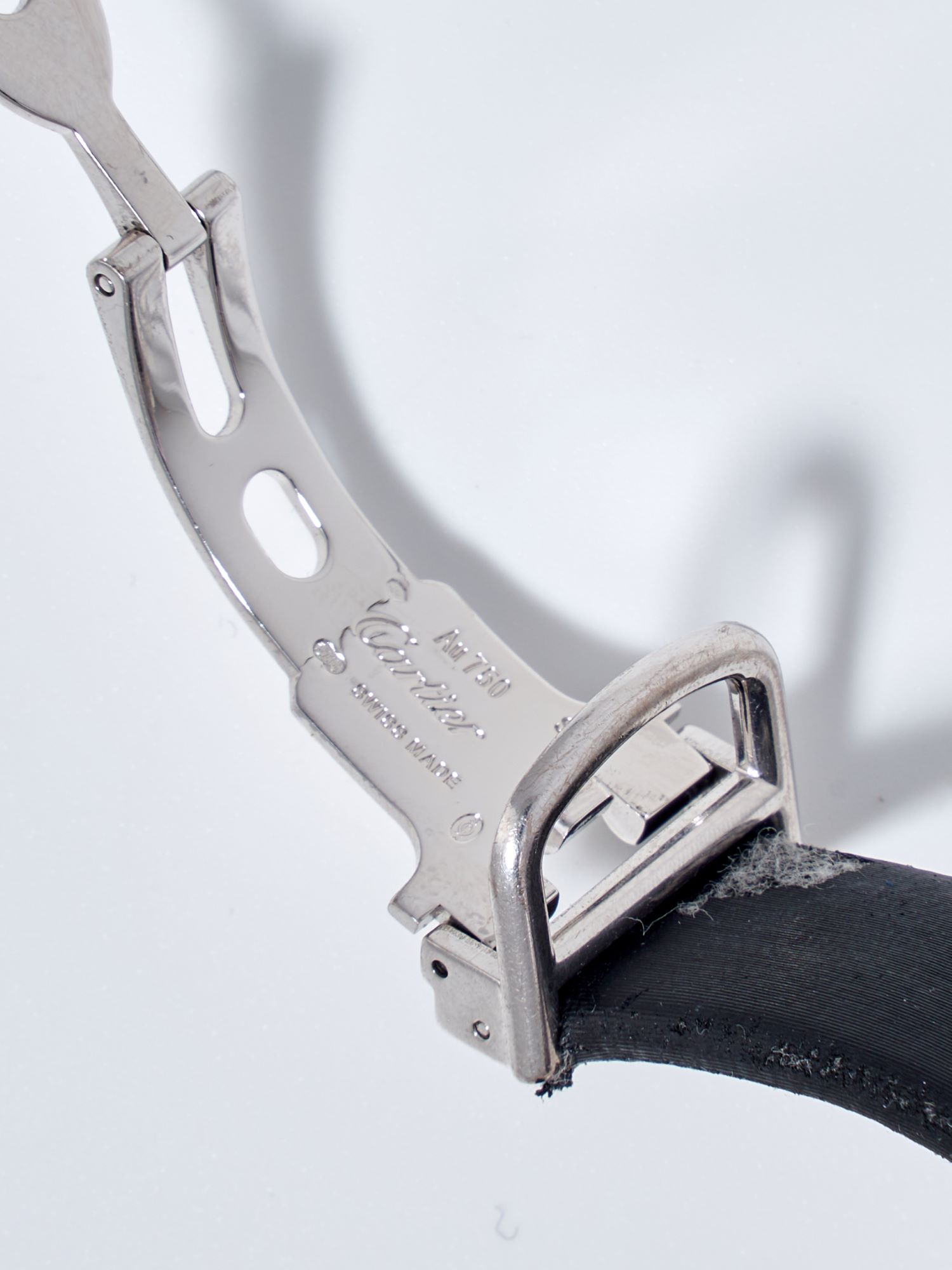 StrapBlack alligator strap, signed Cartier, double folding clasp in 18k white gold, signed Cartier, original