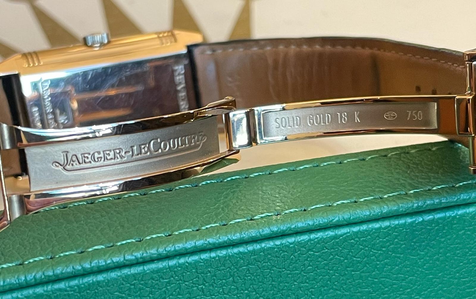 StrapBlack alligator strap, signed Jaeger-LeCoultre, double folding clasp in 18k rose gold, signed Jaeger-LeCoultre logo in relief
