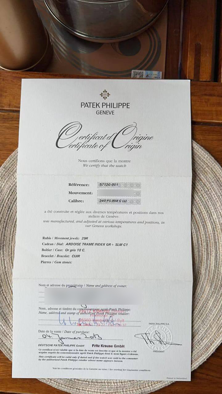 DialAnthracite sunburst dial, with horizontal strips embossed, signed Patek Philippe Geneve, ‘baguette’ hour and minute hands, luminous, applied ‘baguette’ hour indexes in white gold, luminous, small seconds at 4 o’clock, date and moonphase at 6 o’clock, power reserve at 10 o’clock