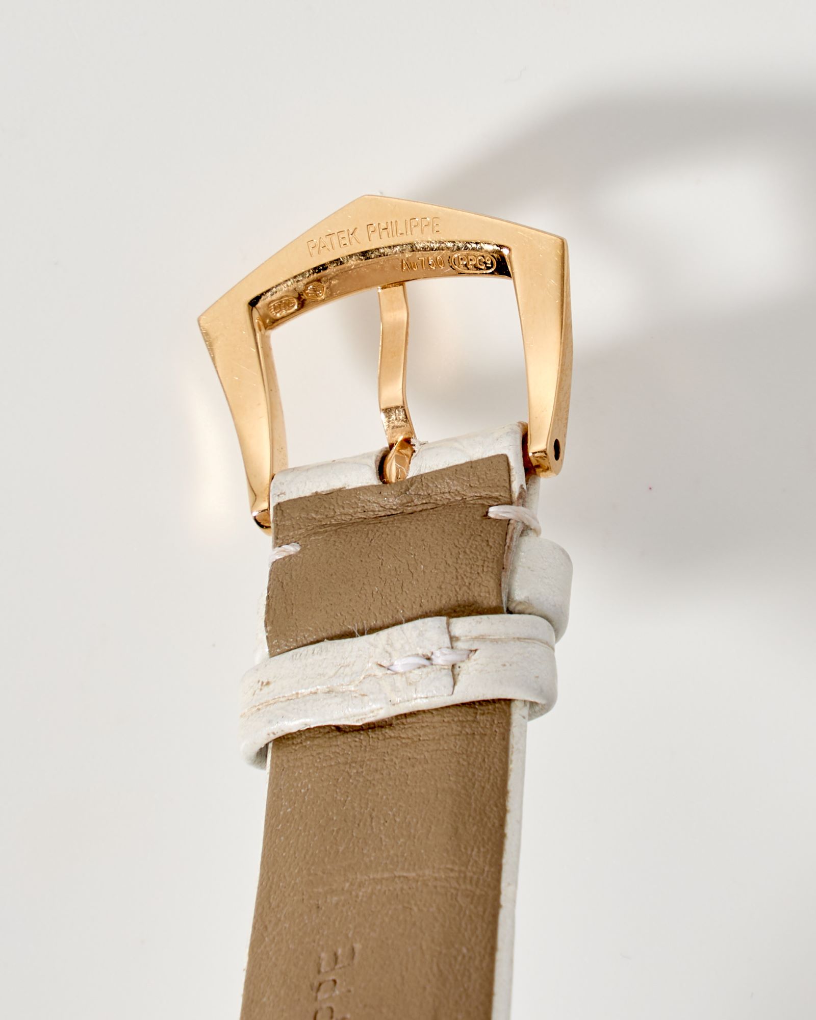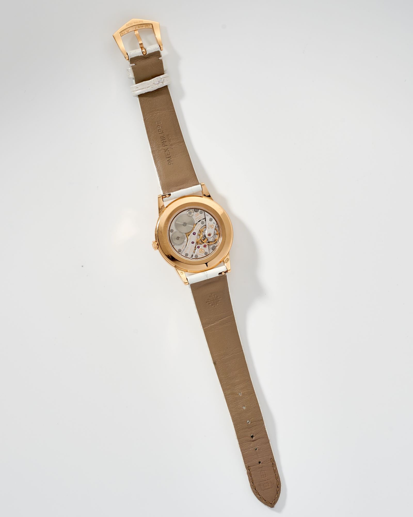 StrapWhite alligator strap, signed Patek Philippe Geneve, pin buckle in 18k rose gold signed Patek Philippe
