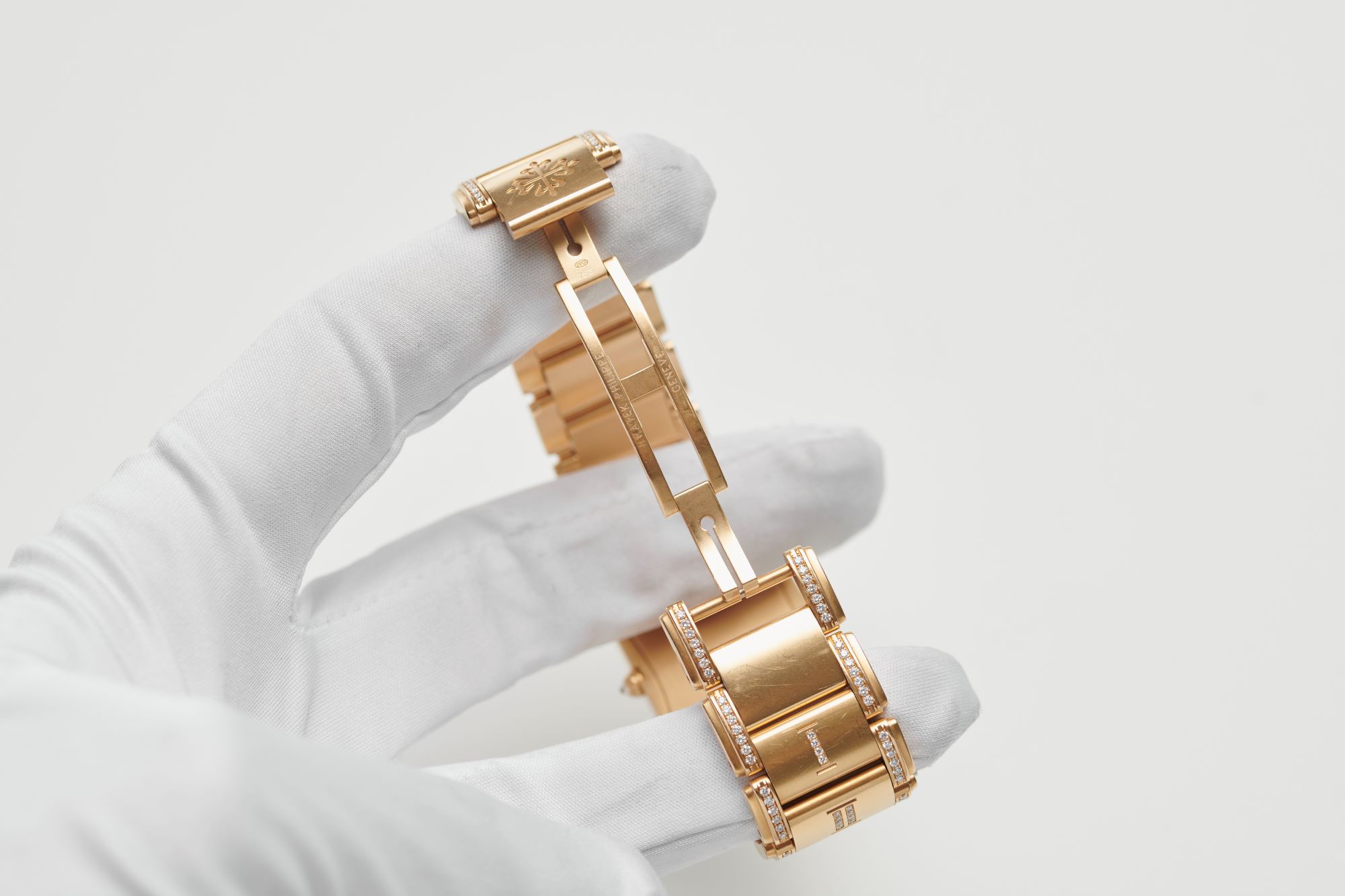 DialSilvered dial with applied hour diamonds indices, signed "Patek Philippe Geneve"