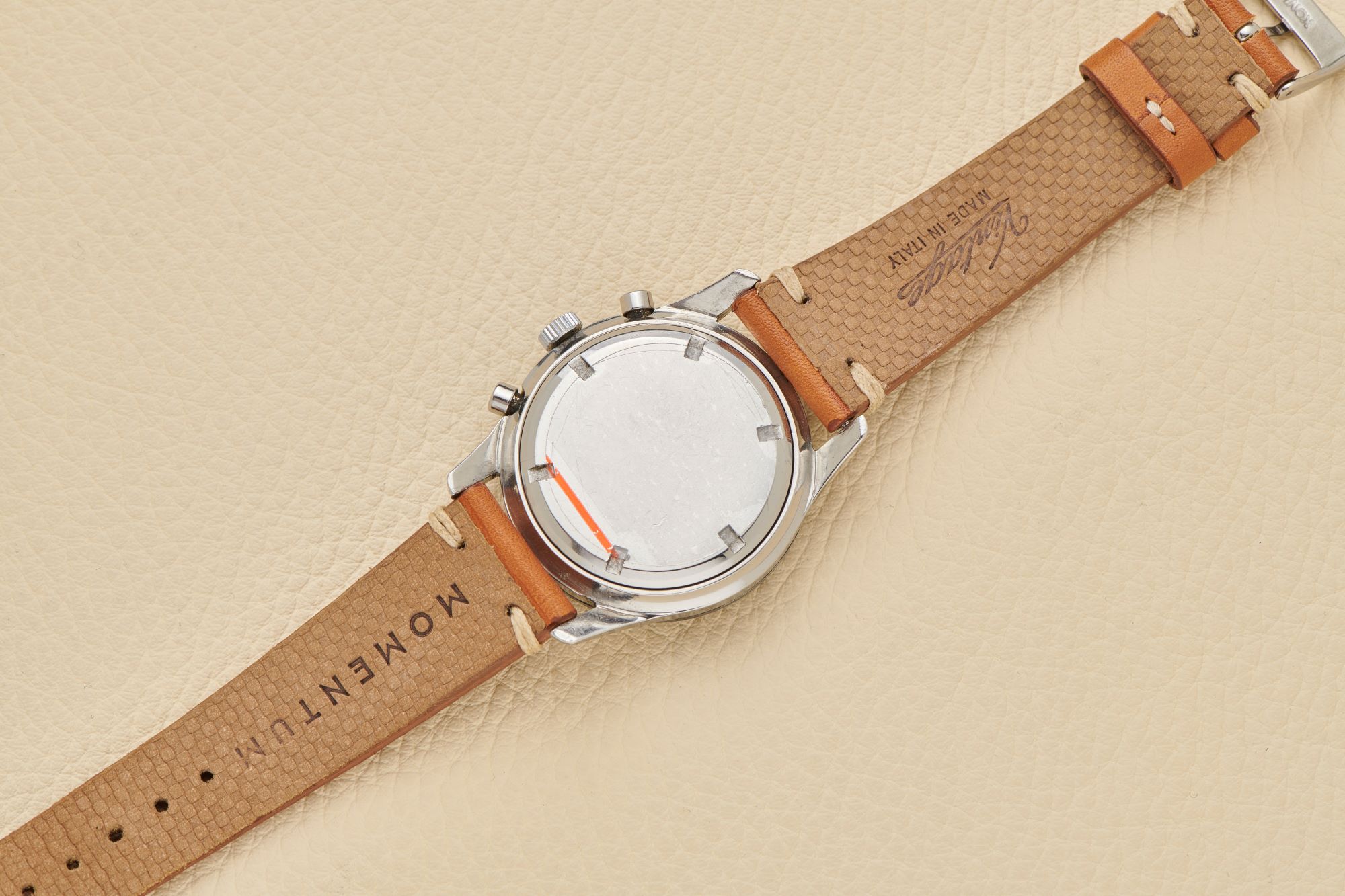 MovementHand-wound mechanical movement, functions: hours, minutes, small seconds, chronograph with seconds, minute and hour counters