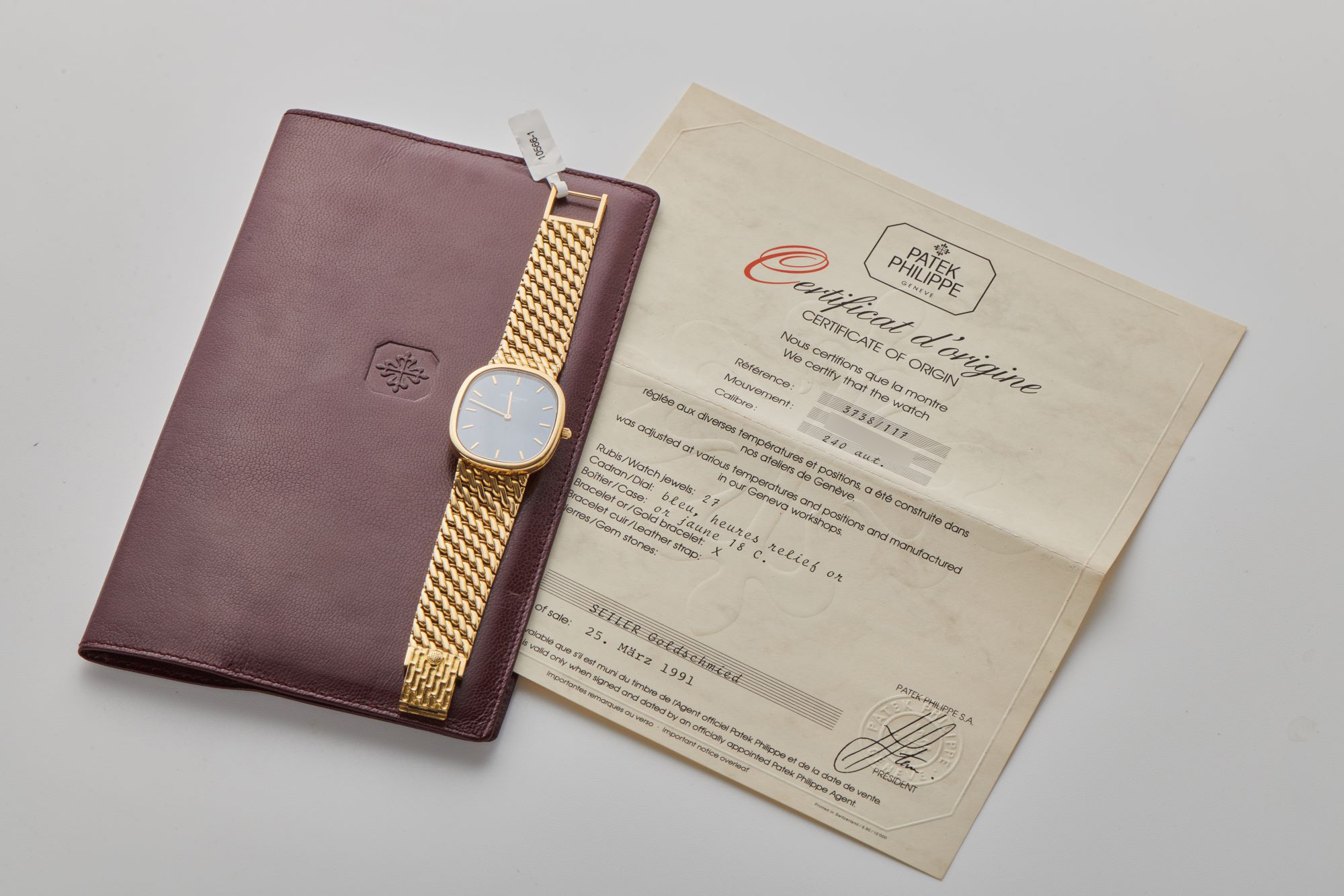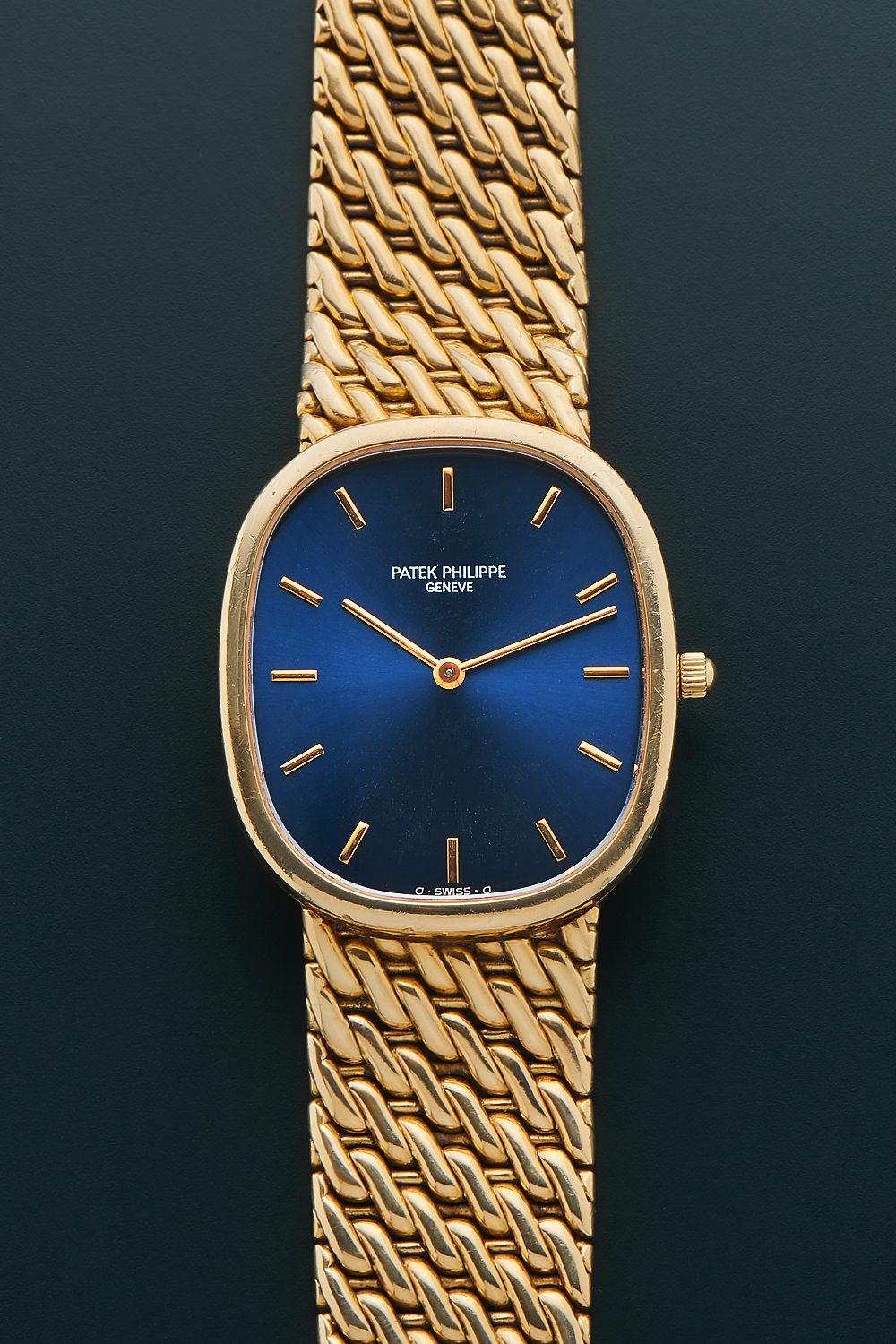 DialBlue sunburst dial with applied yellow gold indices, yellow gold stick hands, signed 'Patek Philippe Genève' at 12 o'clock