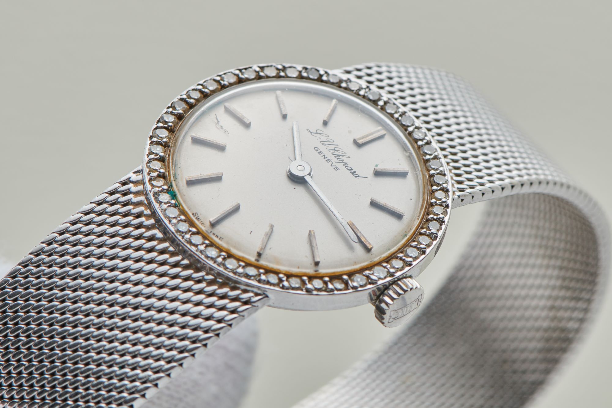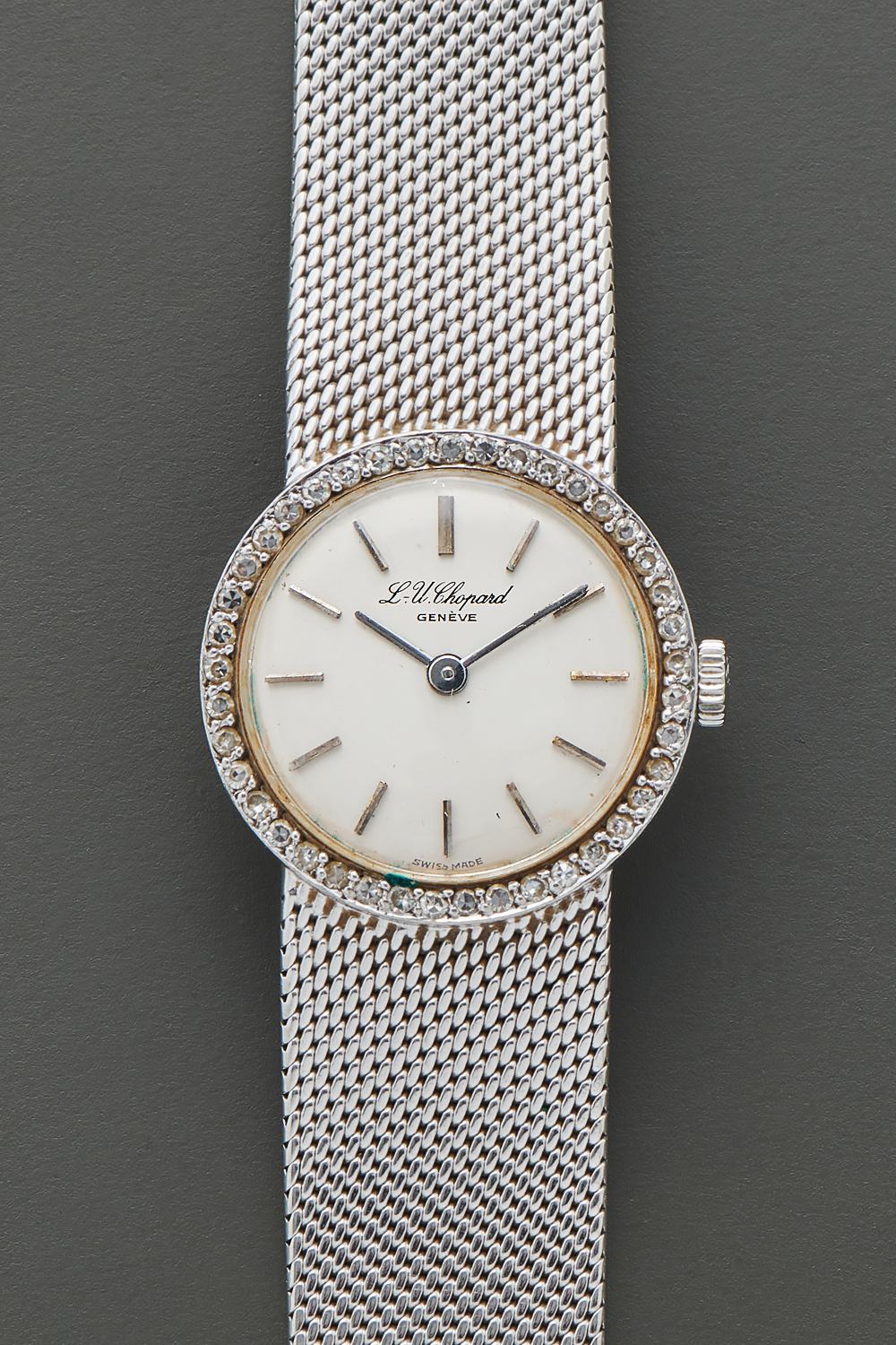 DialSilver domed dial with white gold obelisk hands and applied white gold indices, signed 'L.U. Chopard Genève' at 12 o'clock, signed 'Swiss Made' at 6 o'clock,