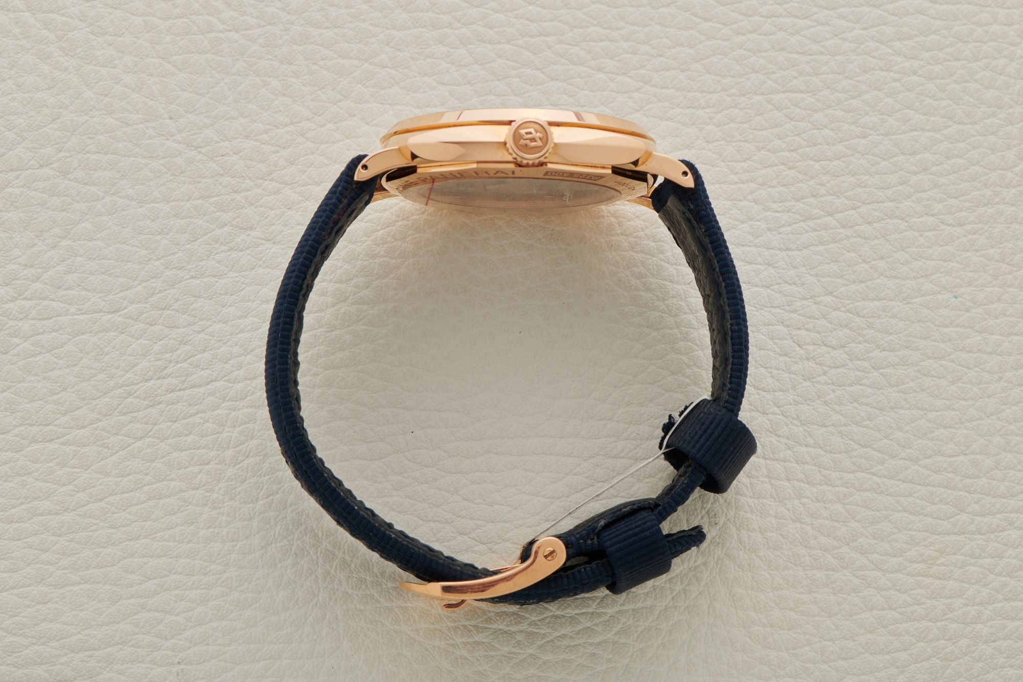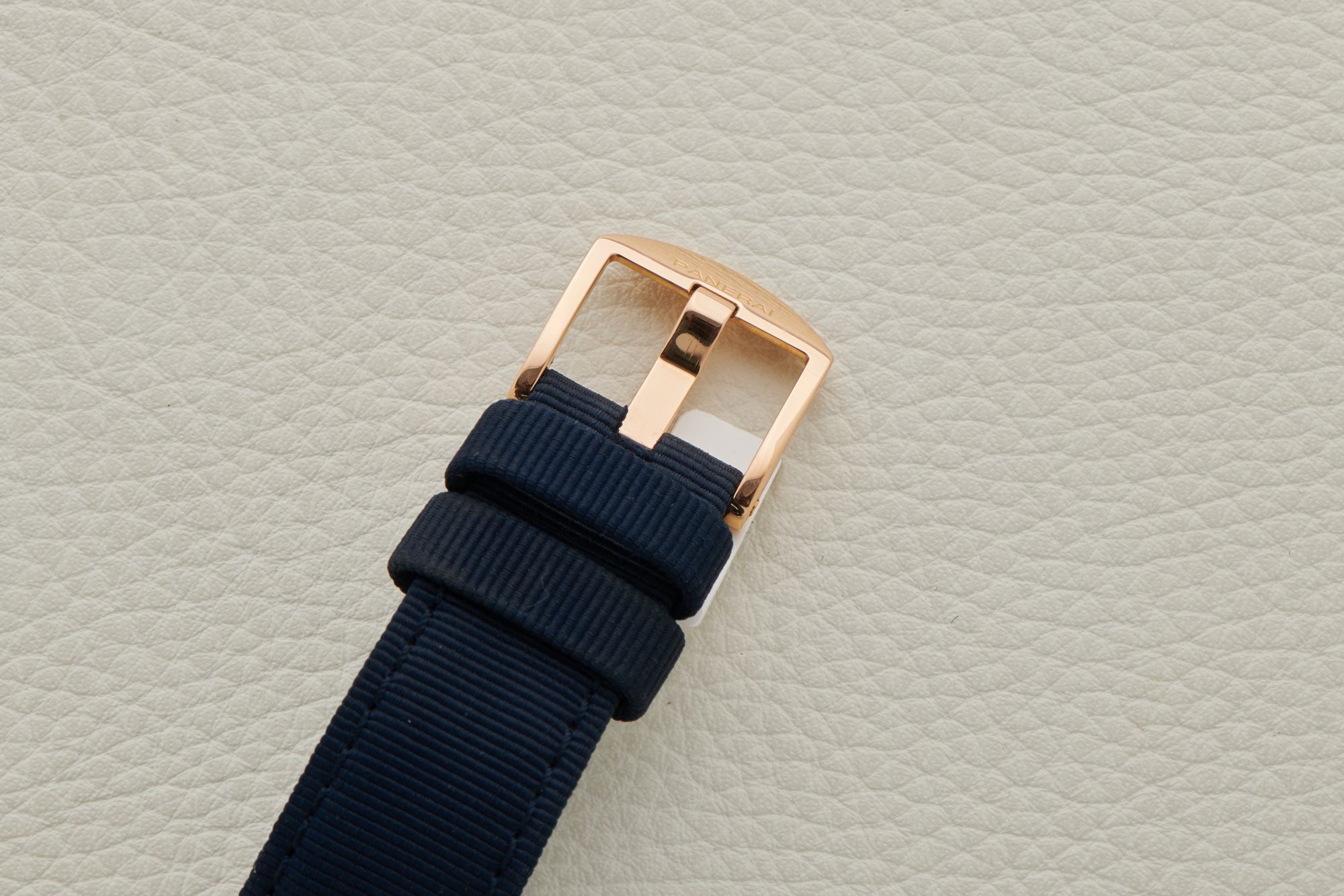 StrapNavy blue ribbed canvas strap with pin buckle in 18k rose gold, signed Panerai