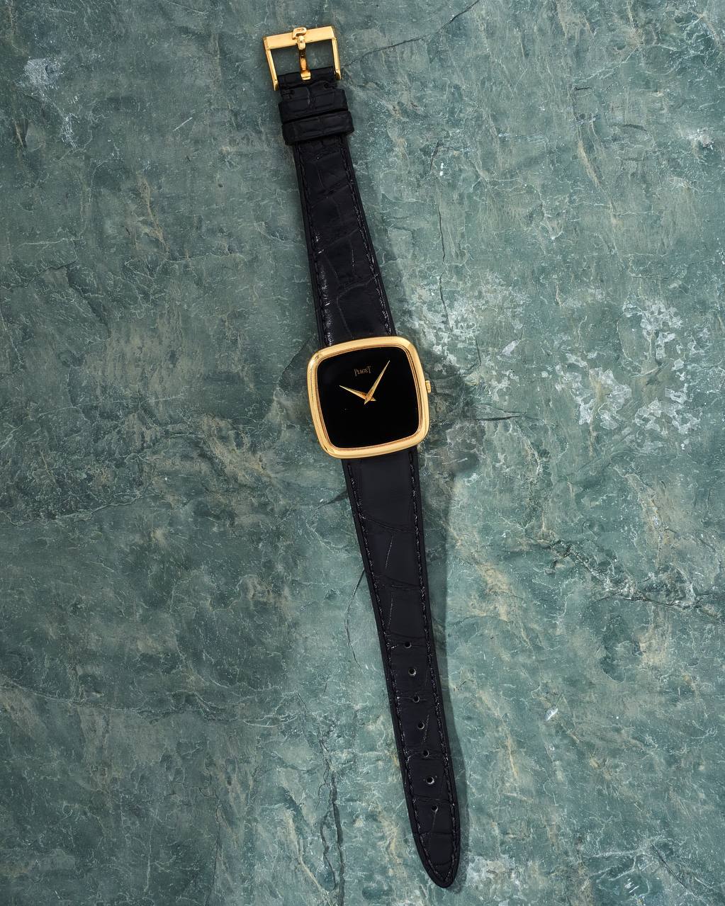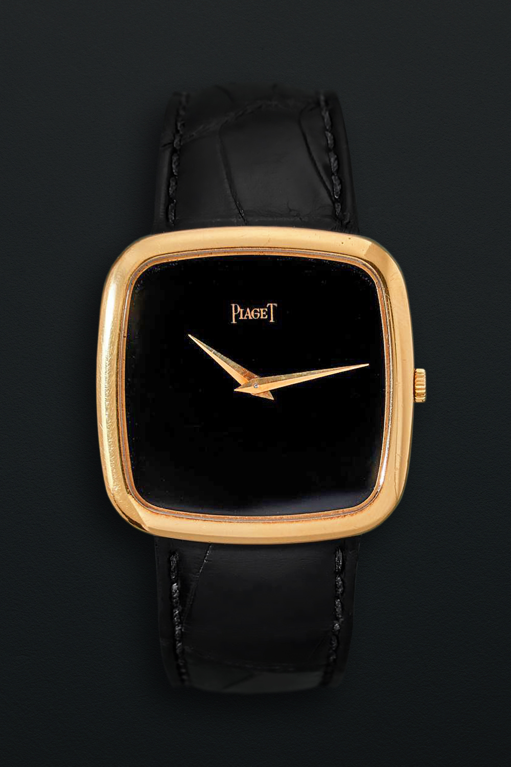 DialBlack polished dial, signed Piaget, yellow gold ‘Dauphine’ hour and minute hands
