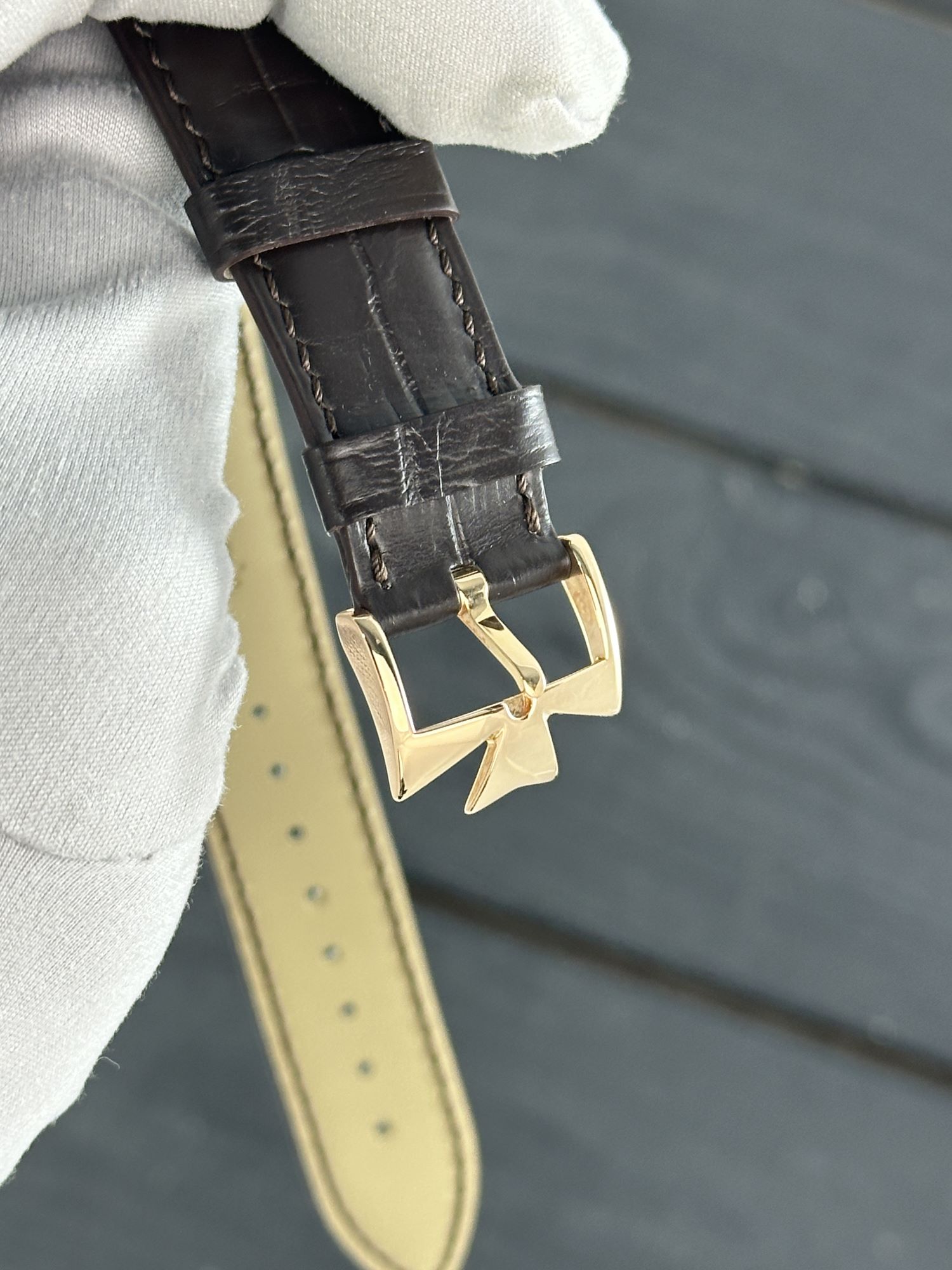 StrapBlack alligator strap, half Maltese cross shaper pin buckle in 18k rose gold