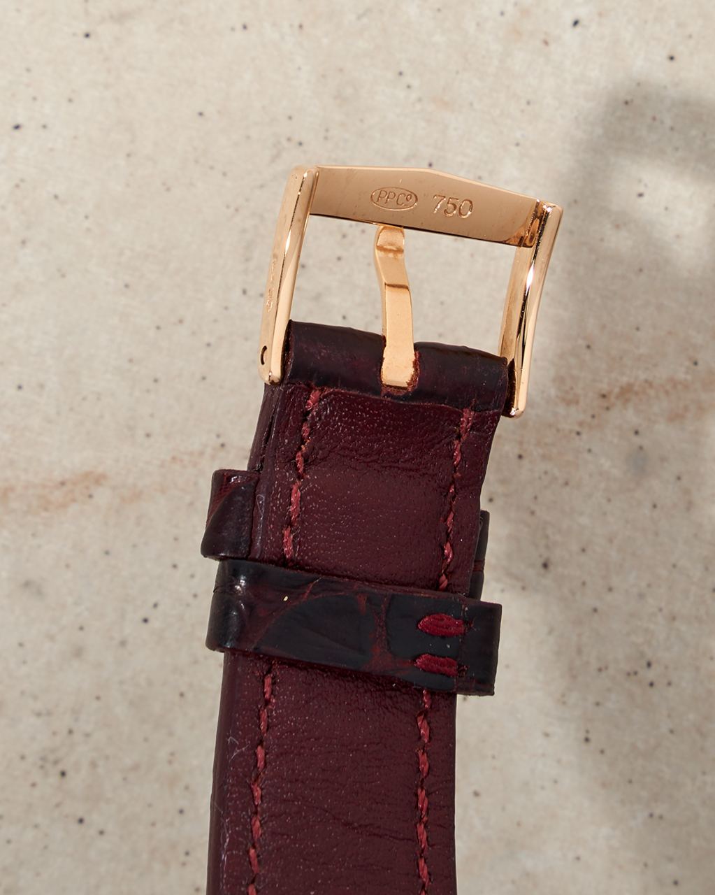 StrapBrown alligator strap, pin buckle in 18k rose gold signed ‘PP Co’