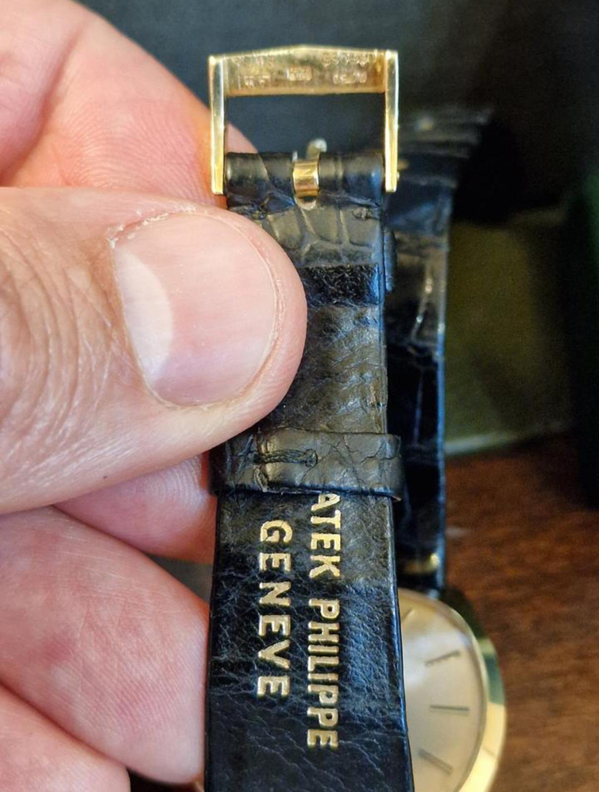 StrapBlack alligator strap, signed Patek Philippe Geneve, pin buckle in 18k yellow gold signed ‘PP Co’