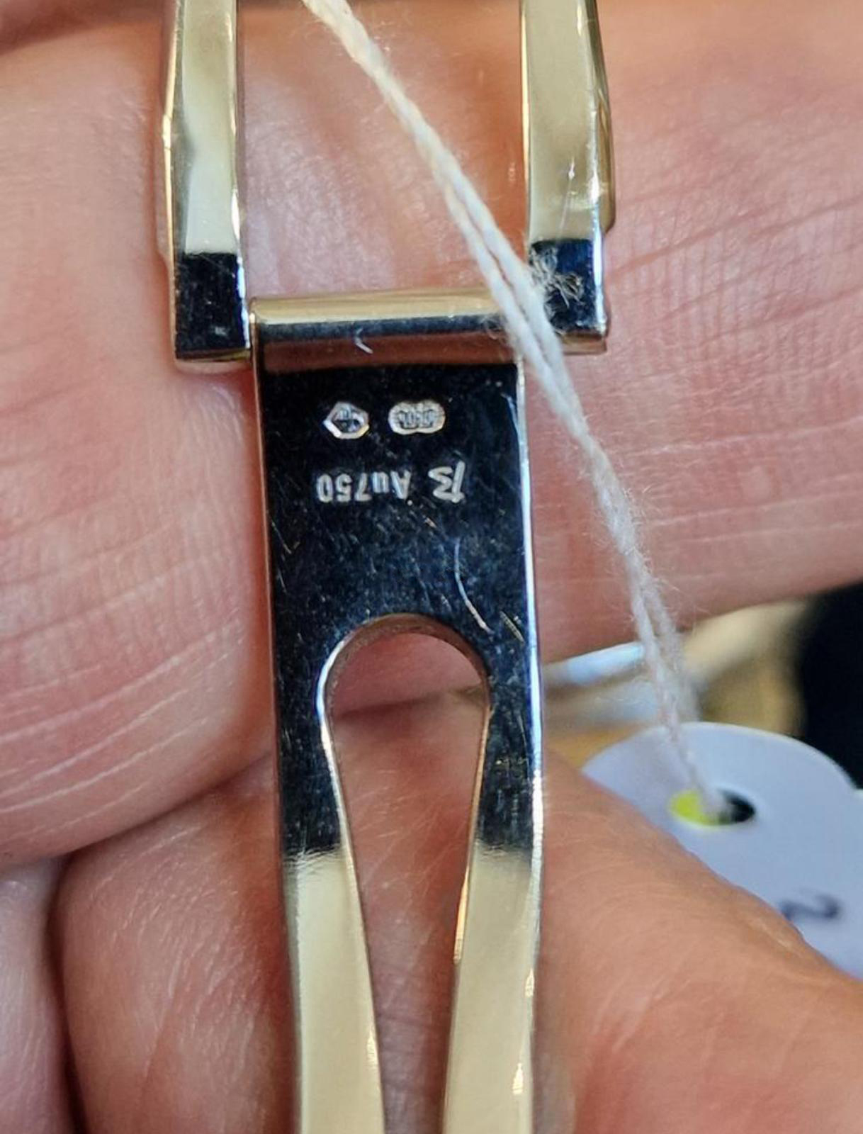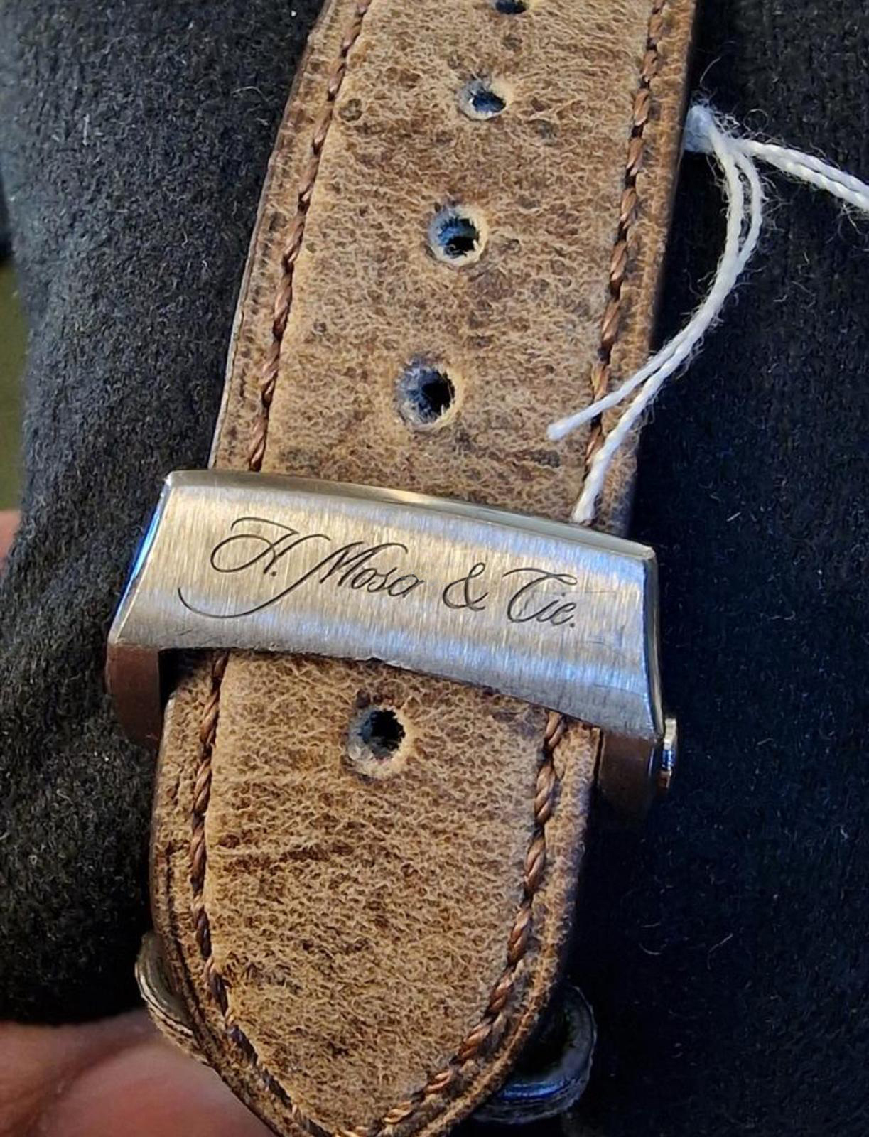 StrapBrown ‘kudu’ leather strap with yellow ‘lemon’ lining, signed Patek Philippe Geneve, folding clasp in 18k white gold engraved ‘H. Moser & Cie’