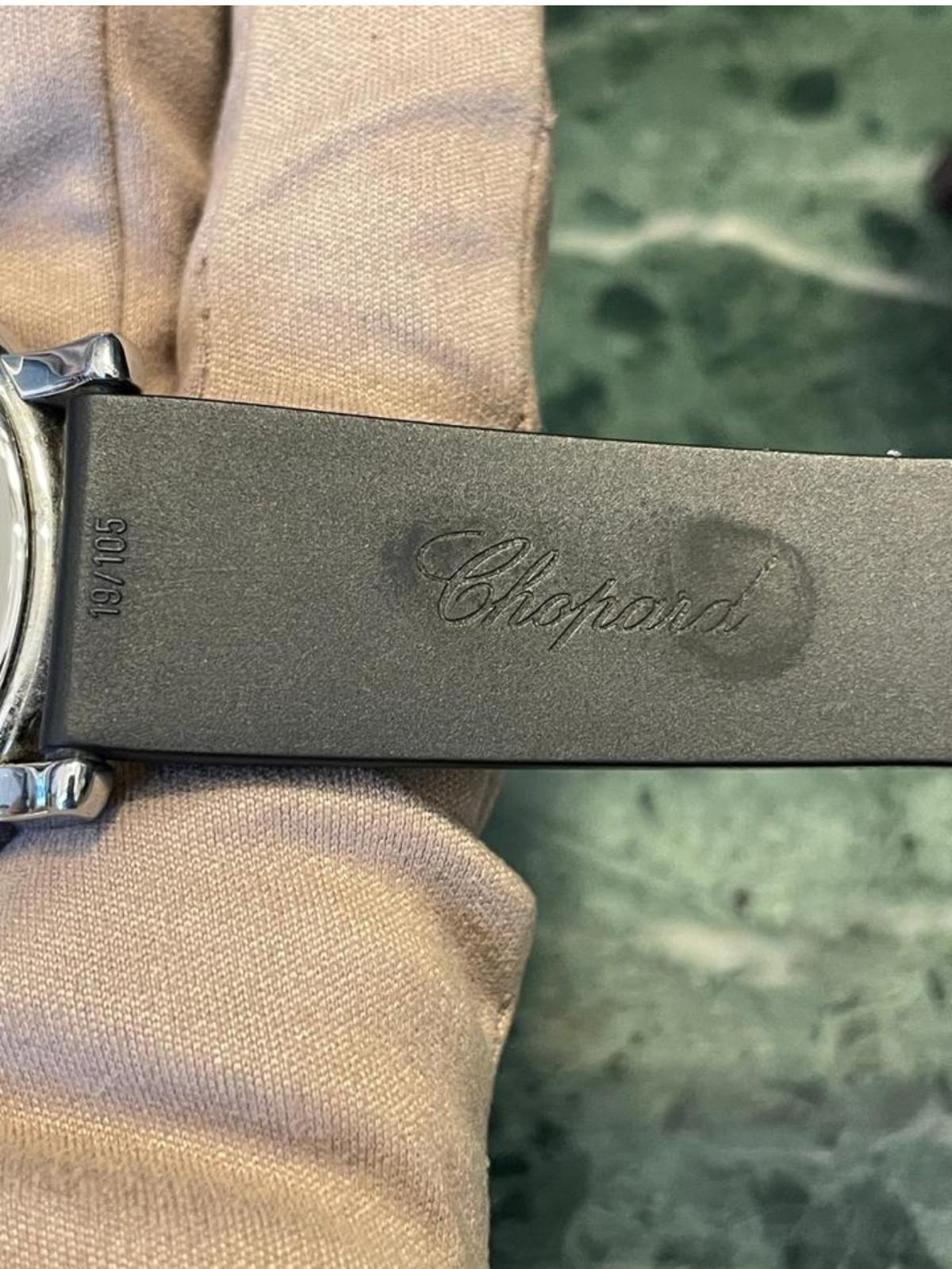 StrapBlack rubber strap with relief protector pattern, pin buckle with Chopard logo engraved