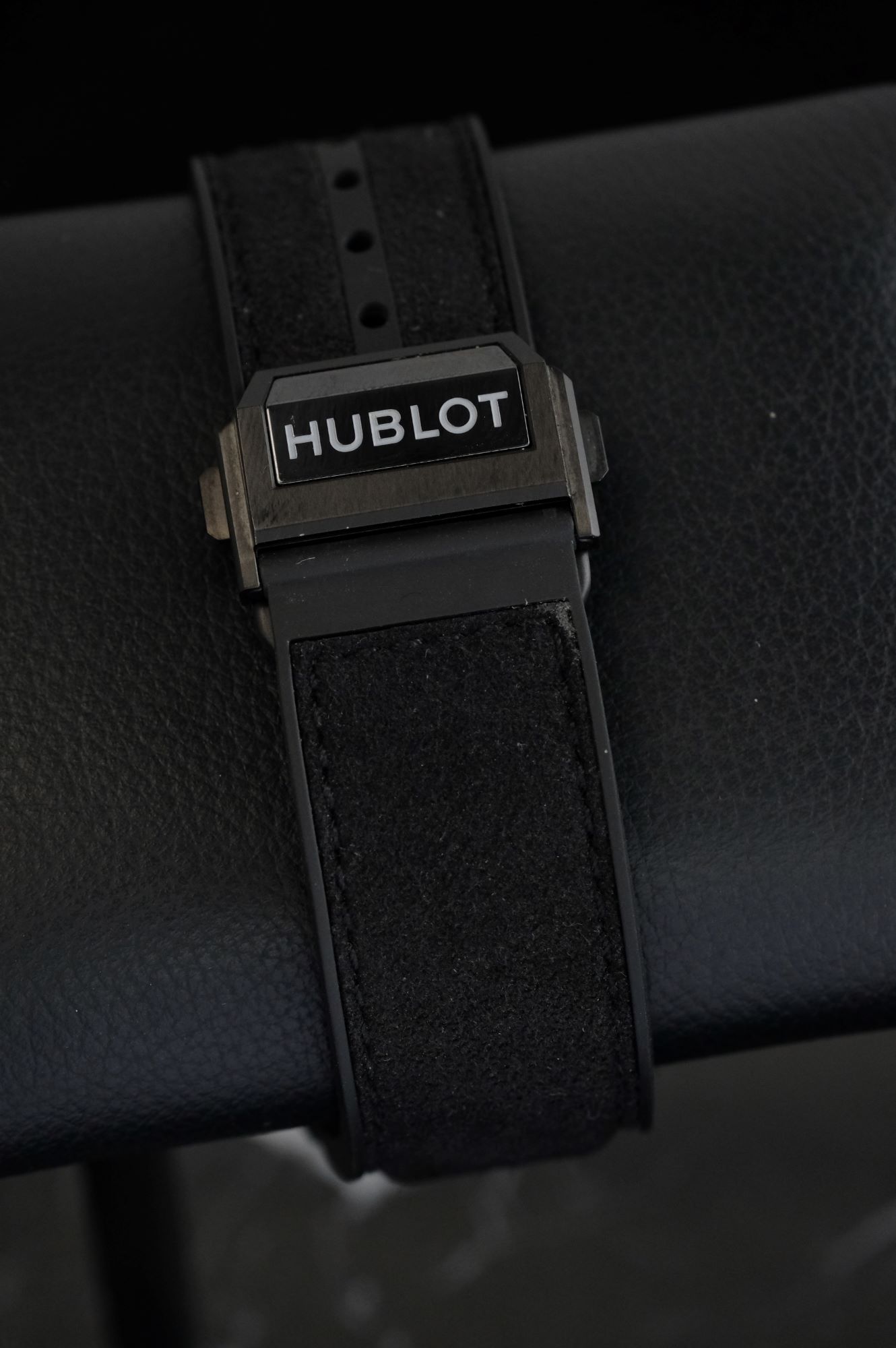 StrapBlack rubber strap signed ‘H Hublot’ with black Alcantara decorative inlay, double folding clasp in blackened titanium and black ceramic with engraved Hublot logo