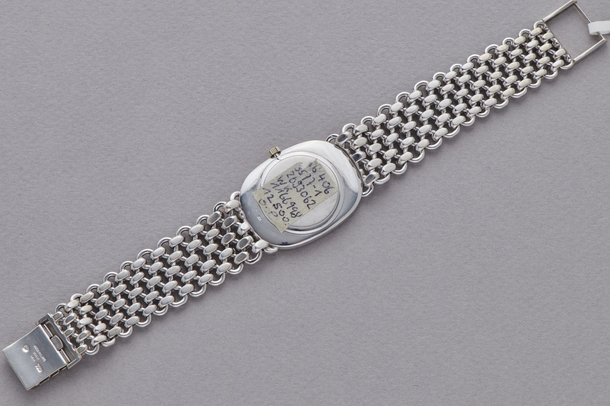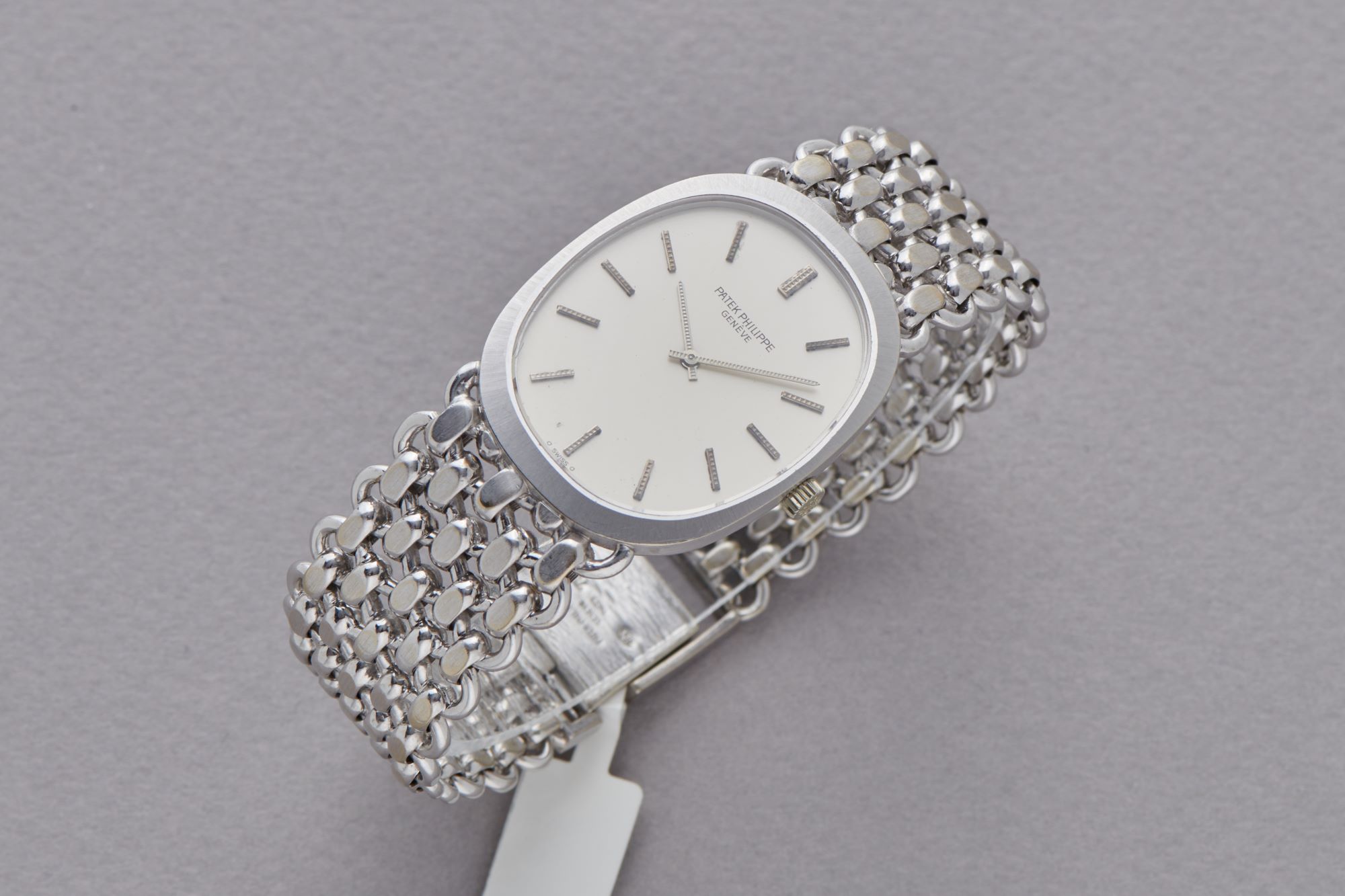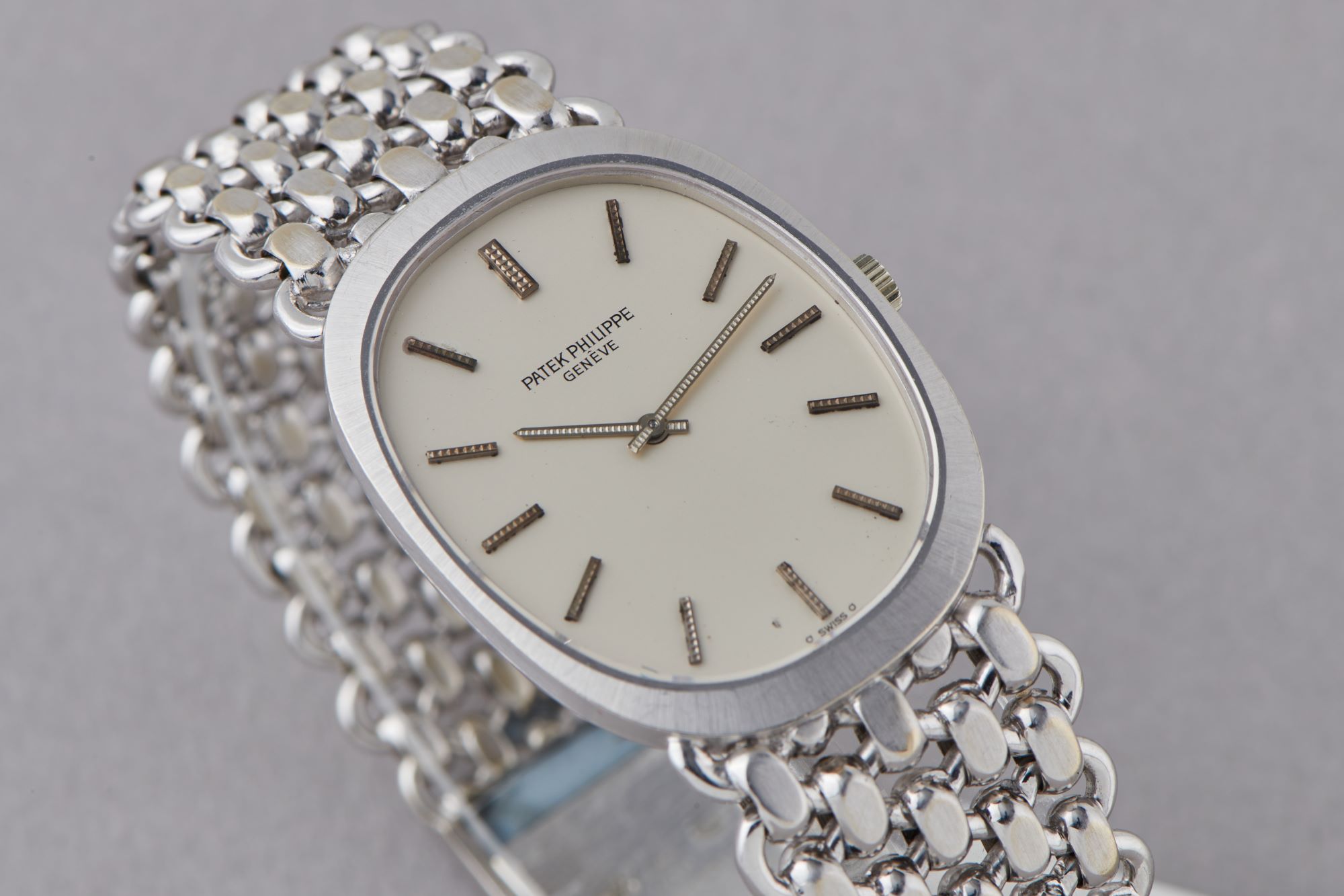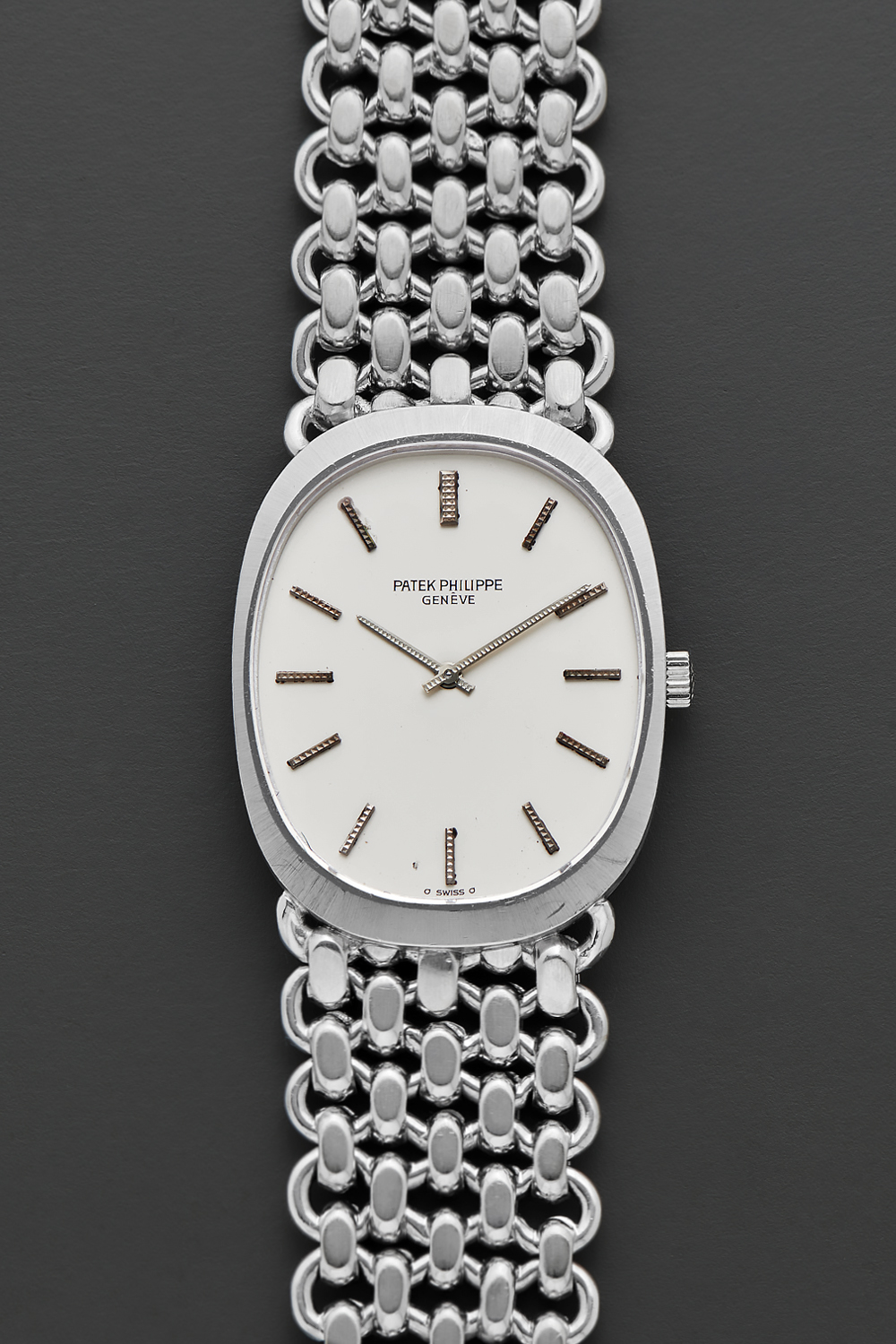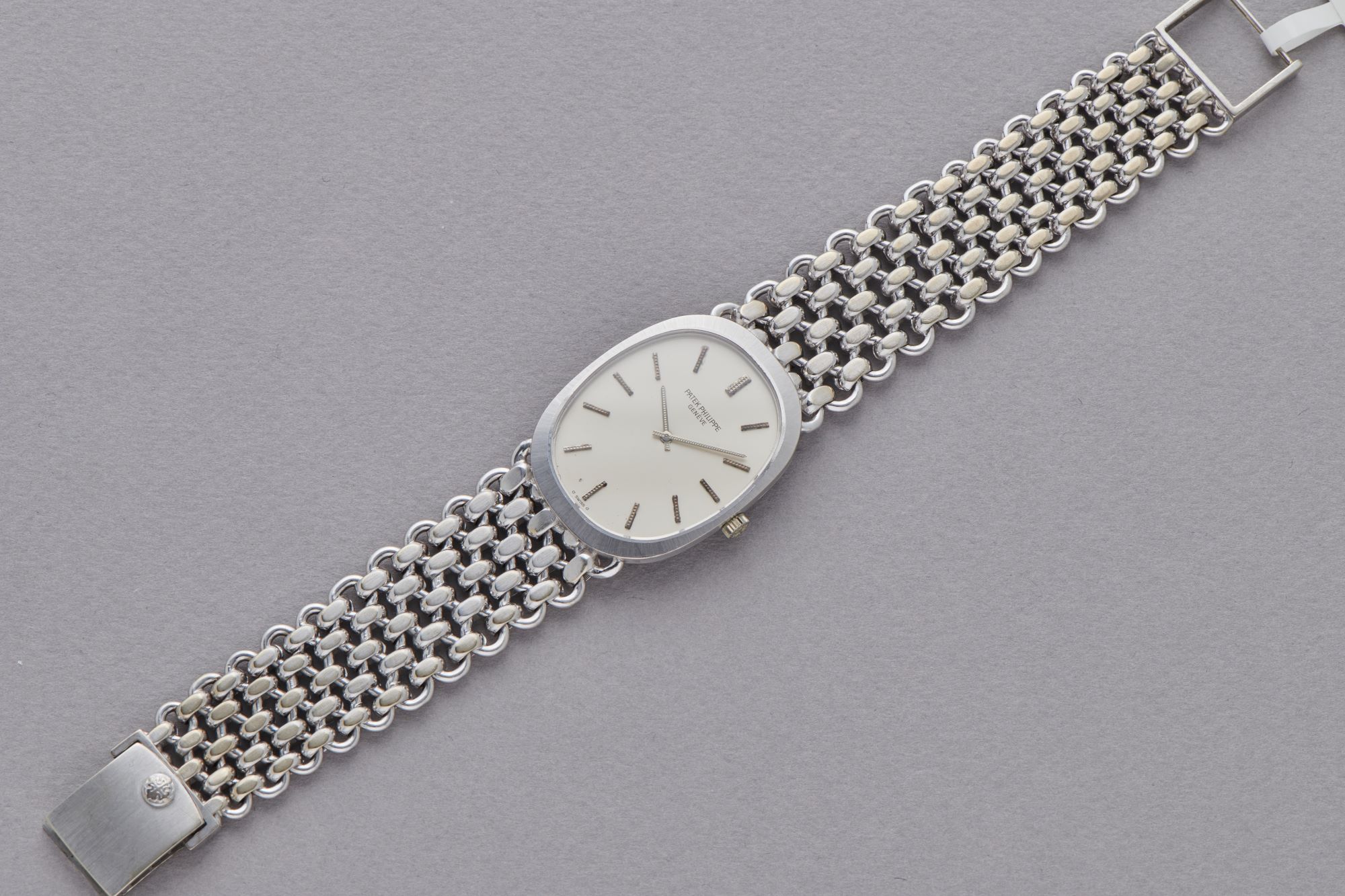 CaseElliptical case in 18k white gold with crown at 3 o'clock