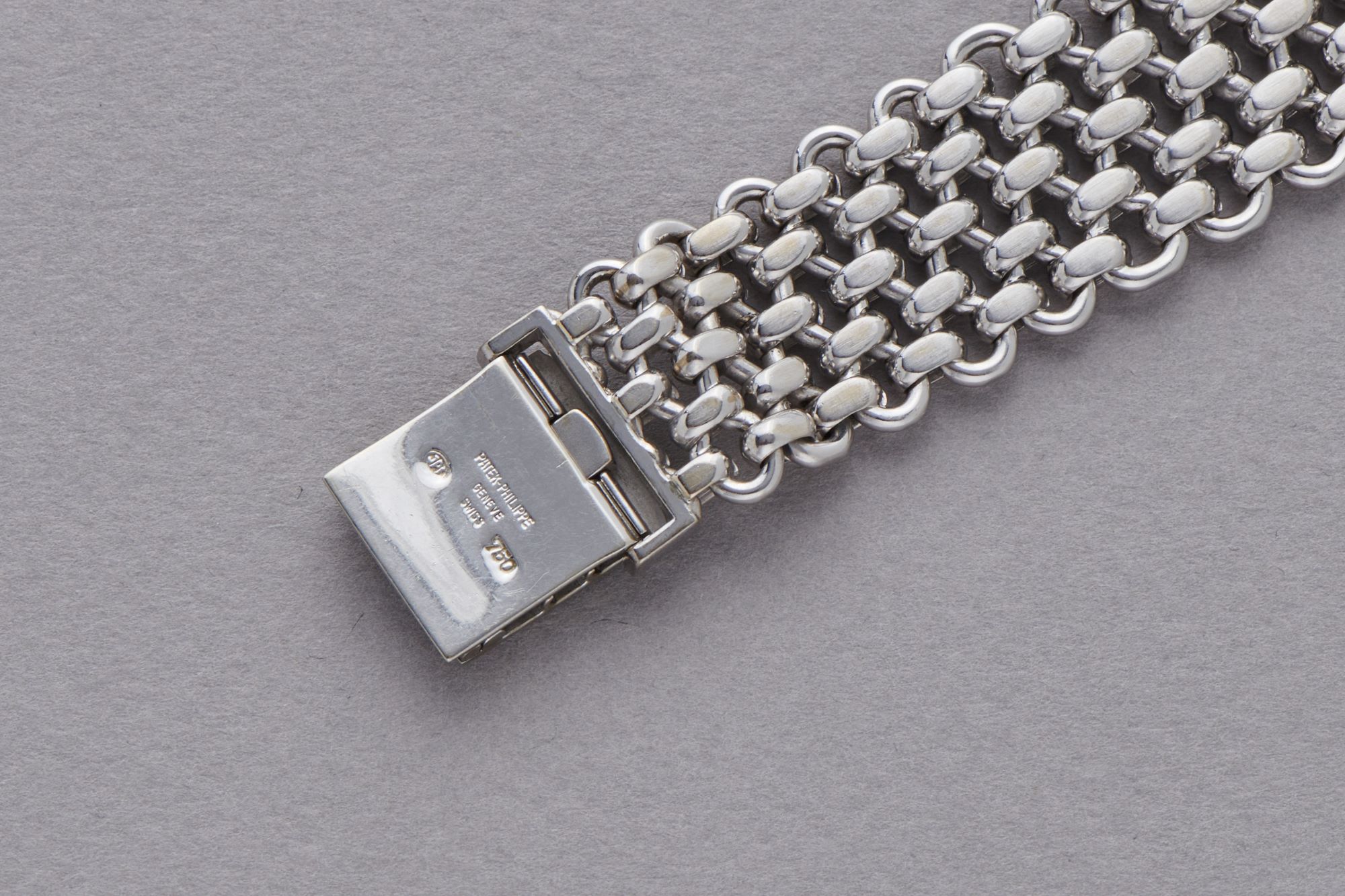 DialSilver-cream dial with applied textured indiced and textured obelisk hour and minute hands, signed 'Patek Philippe Genève' at 12 o'clock