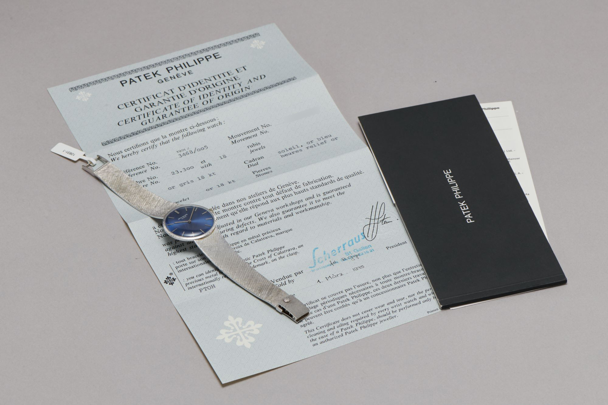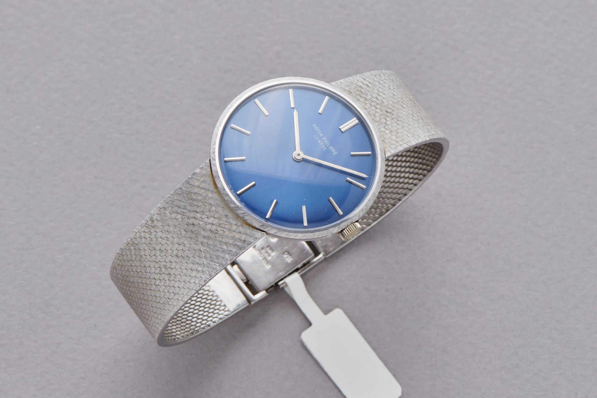 DialBlue sunburst dial with applied white gold indices and white gold hour and minute hands, signed 'Patek Philippe Genève' at 12 o'clock