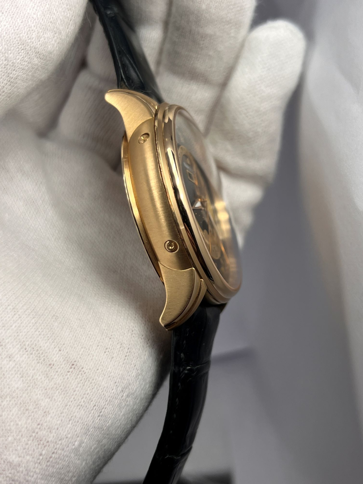 CaseRound case in 18k rose gold, polished and brushed, fixed bezel in 18k rose gold, polished, exhibition caseback fixed on 6 screws, with ‘Masterpiece’, reference and case numbers, winding crown at 3 o’clock with ‘M’ logo embossed