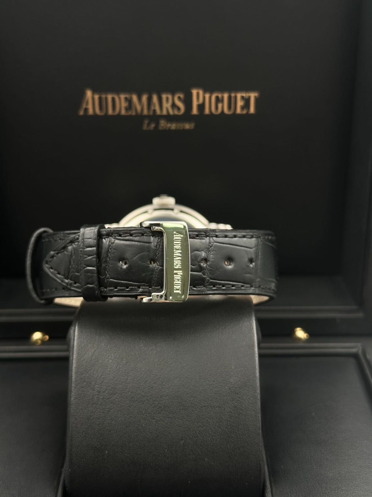 StrapBlack alligator strap, ‘AP’ double folding clasp in stainless steel