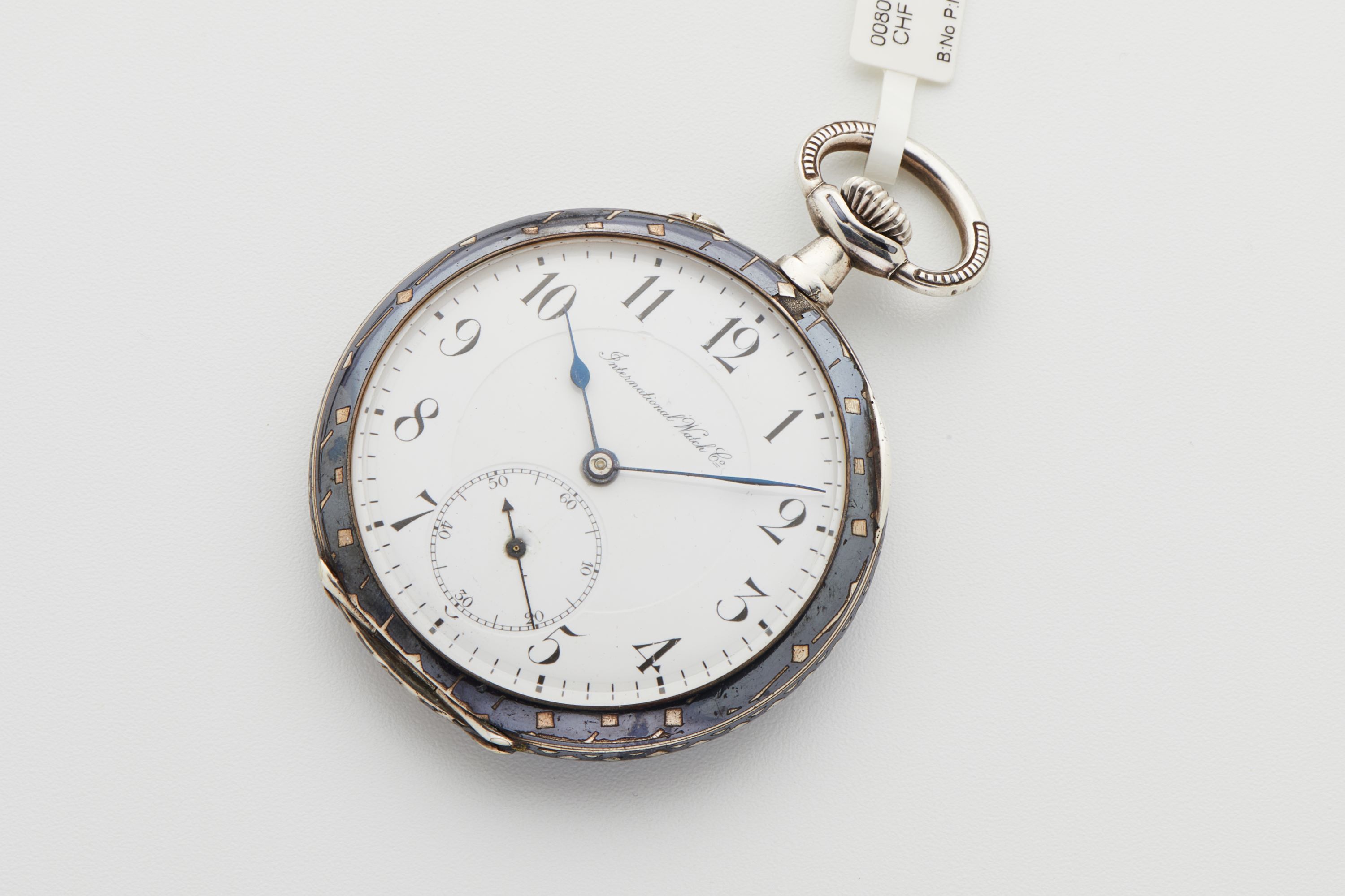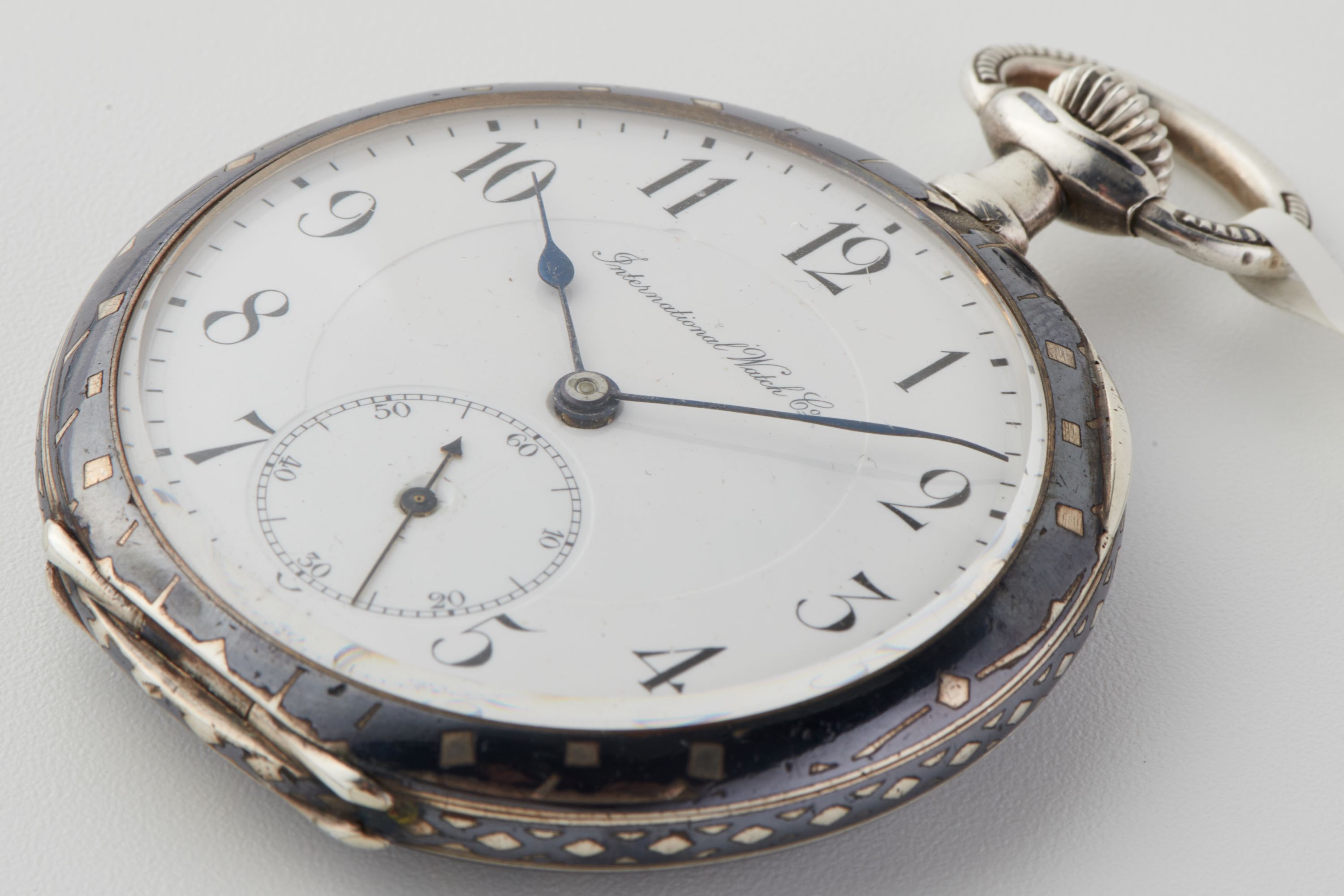DialWhite enamel dial with black numerals and heat blued hands, signed 'International Watch Co.' at 12 o'clock