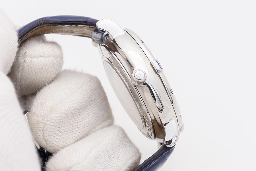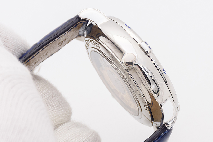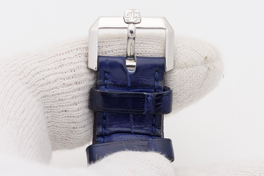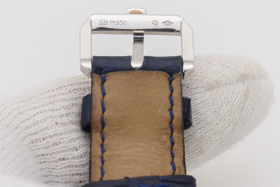 StrapBlue alligator strap, pin buckle in platinum 950 with Ulysse Nardin ‘UN anchor’ logo applied