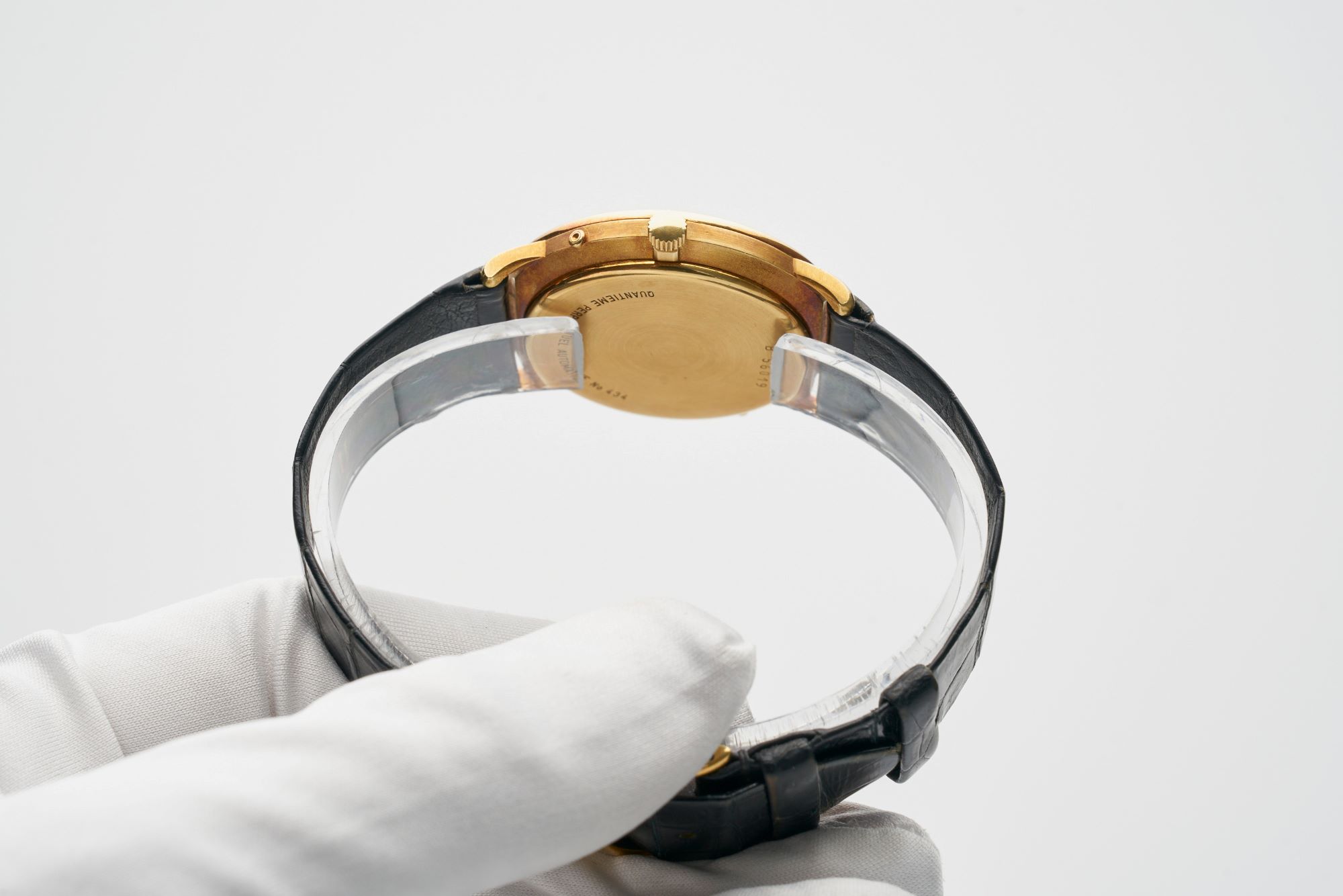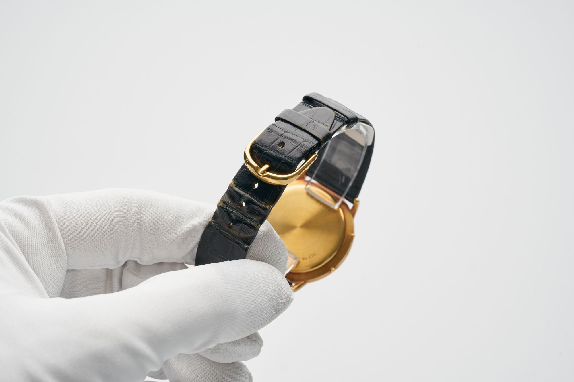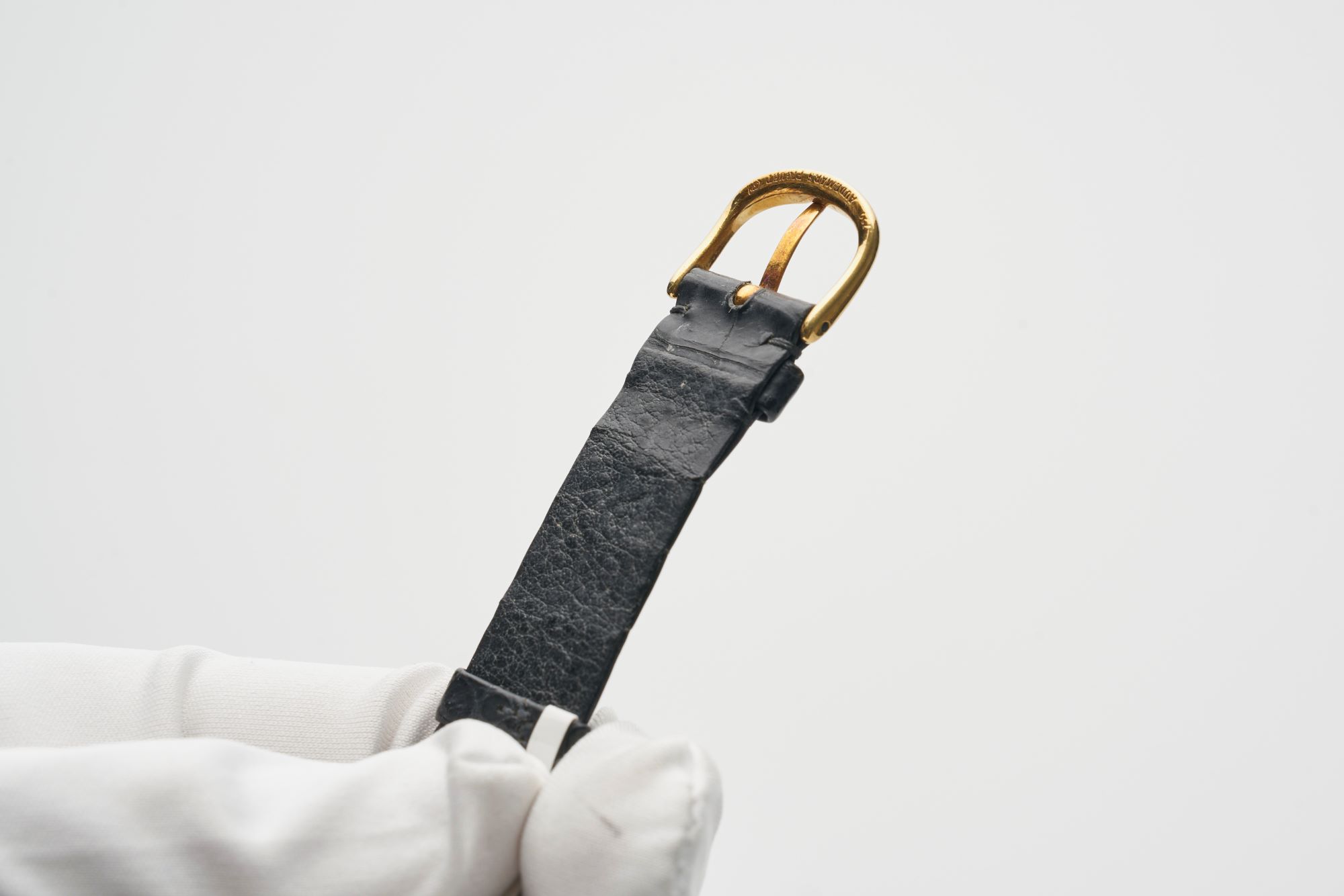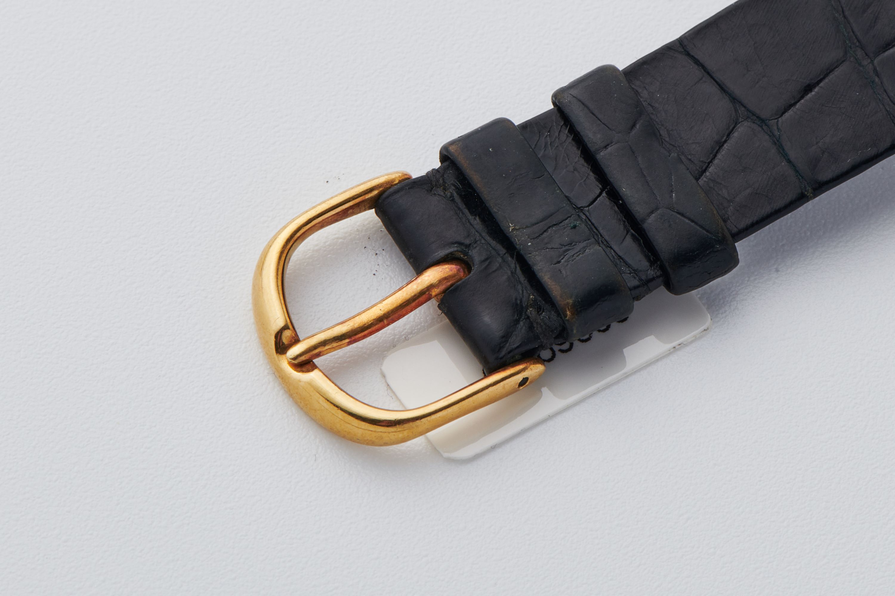 StrapBlack alligator leather strap with pin buckle in 18k yellow gold