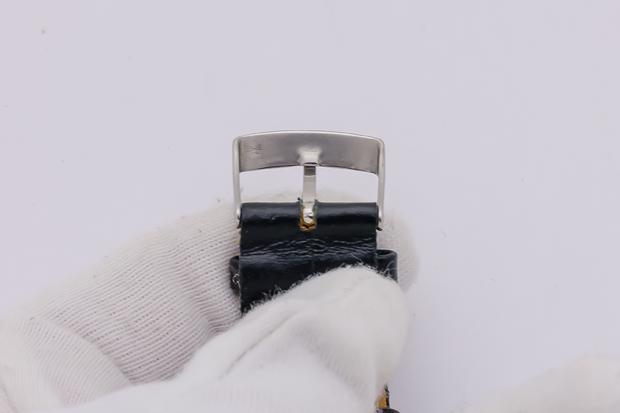 StrapBlack alligator strap, pin buckle in white metal