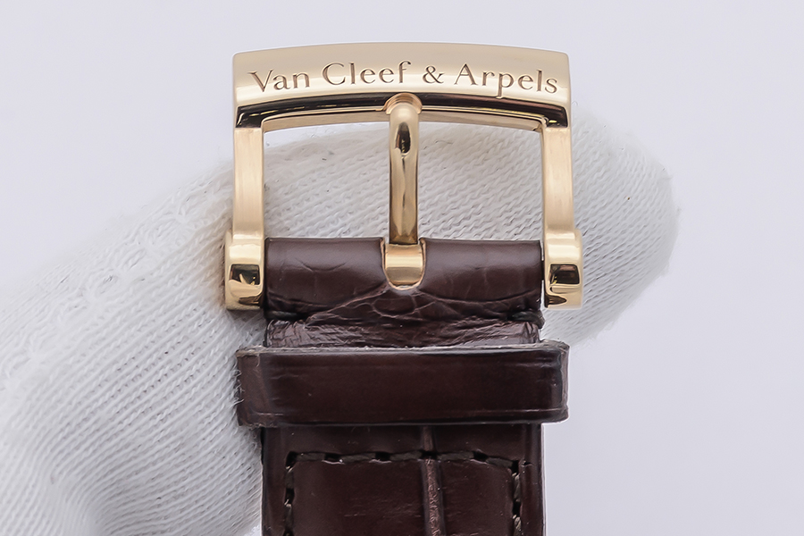 StrapBrown alligator strap, pin buckle in 18k rose gold, with engraved ‘Van Cleef & Arpels’ logo