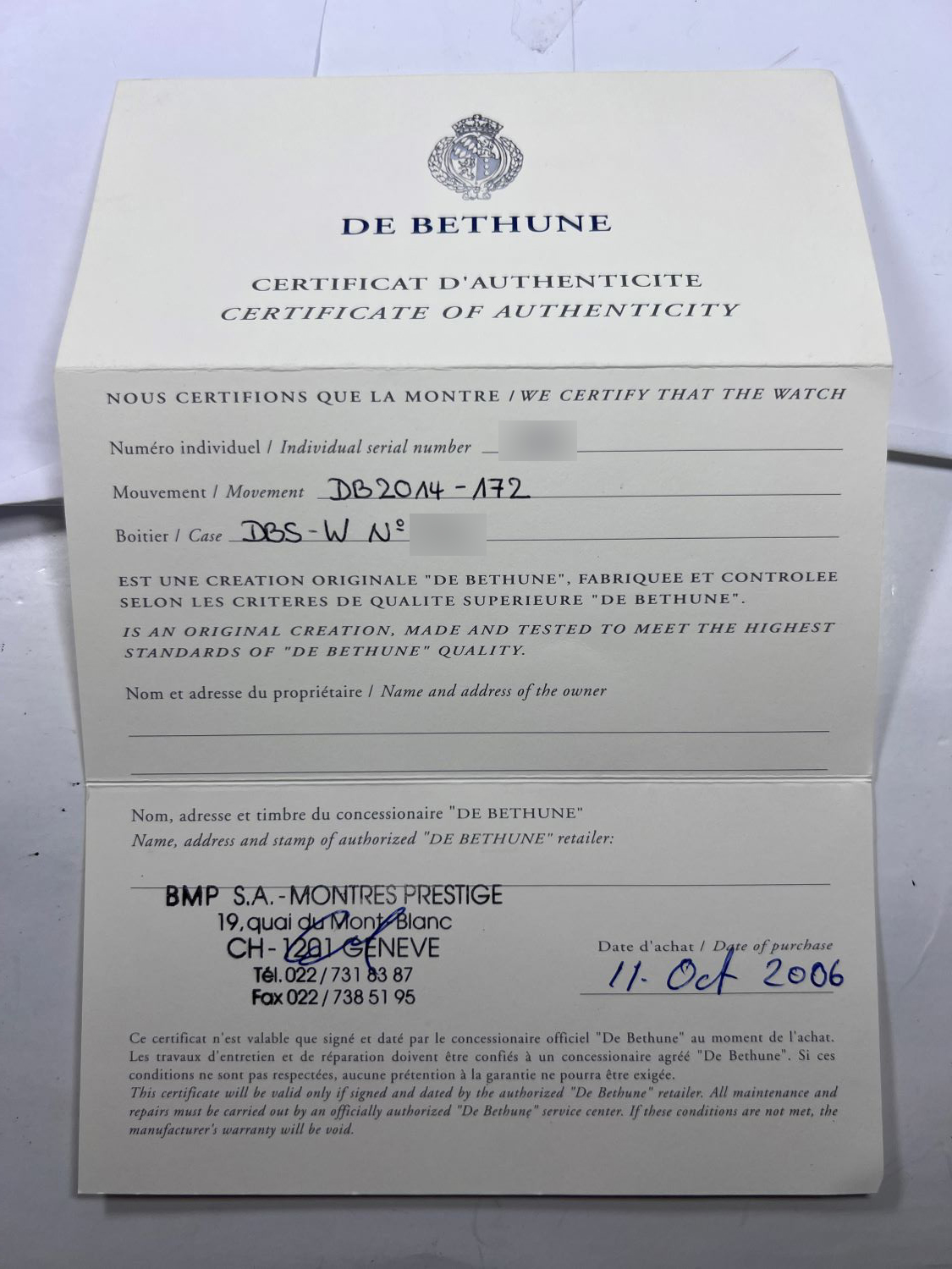 Cal.De Bethune DB2014-172