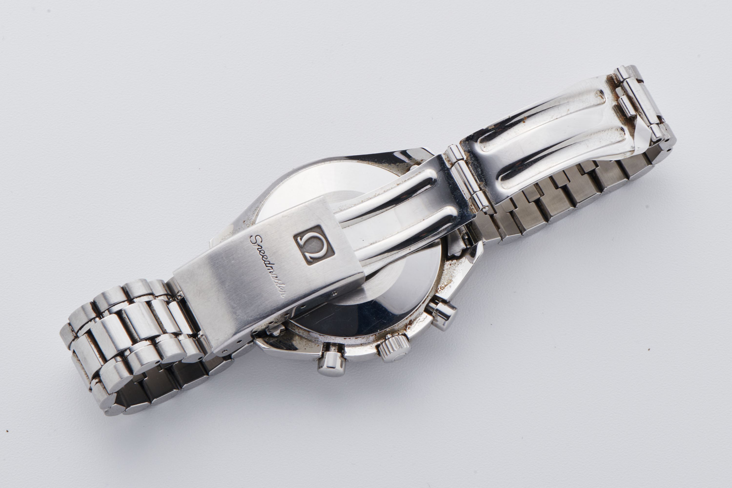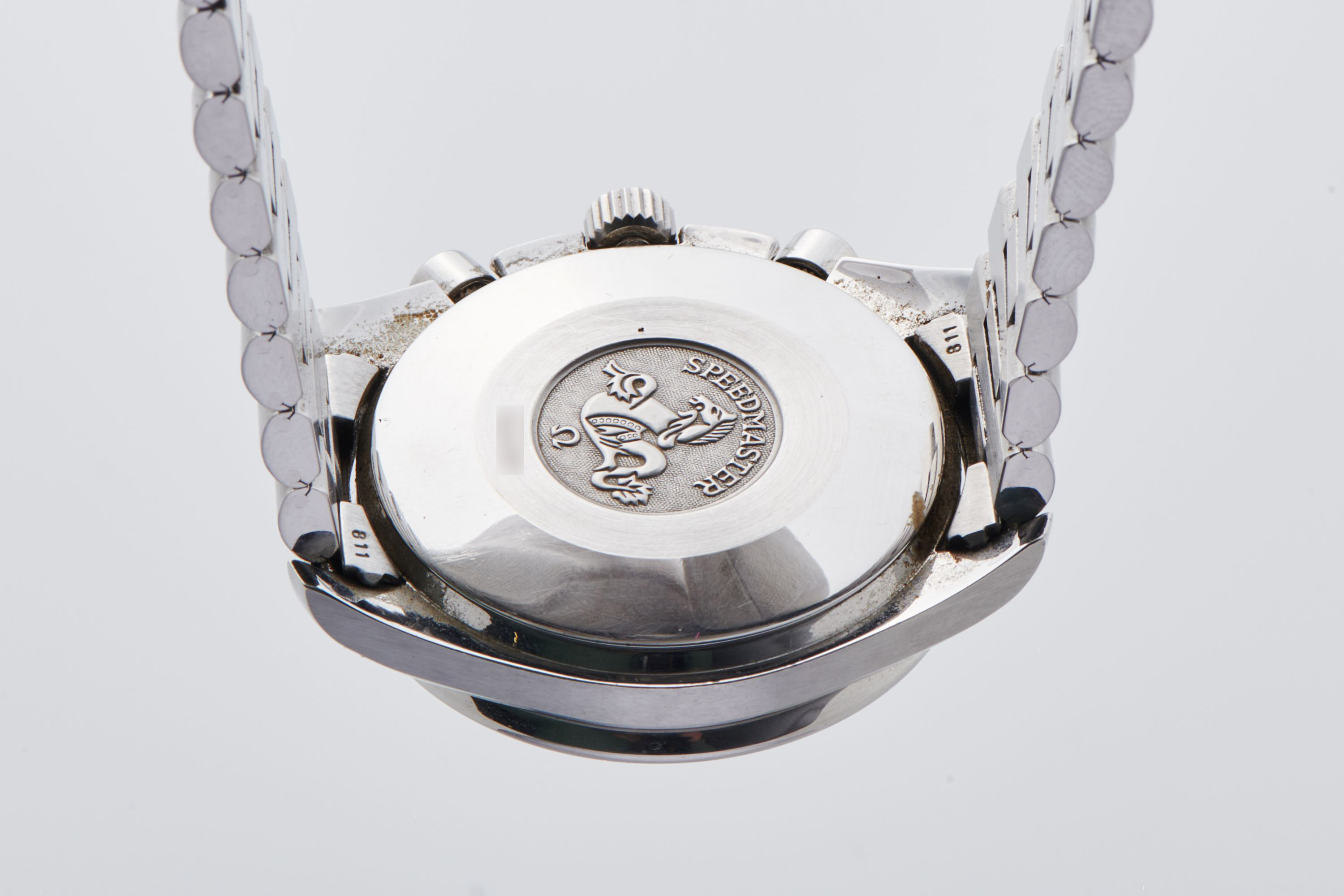 DialYellow dial with white, red, and black accents, small seconds at 3 o'clock, 12 hour chronograph counter at 6 o'clock, 30 minute chronograph counter at 9 o'clock, signed 'Omega' at 12 o'clock