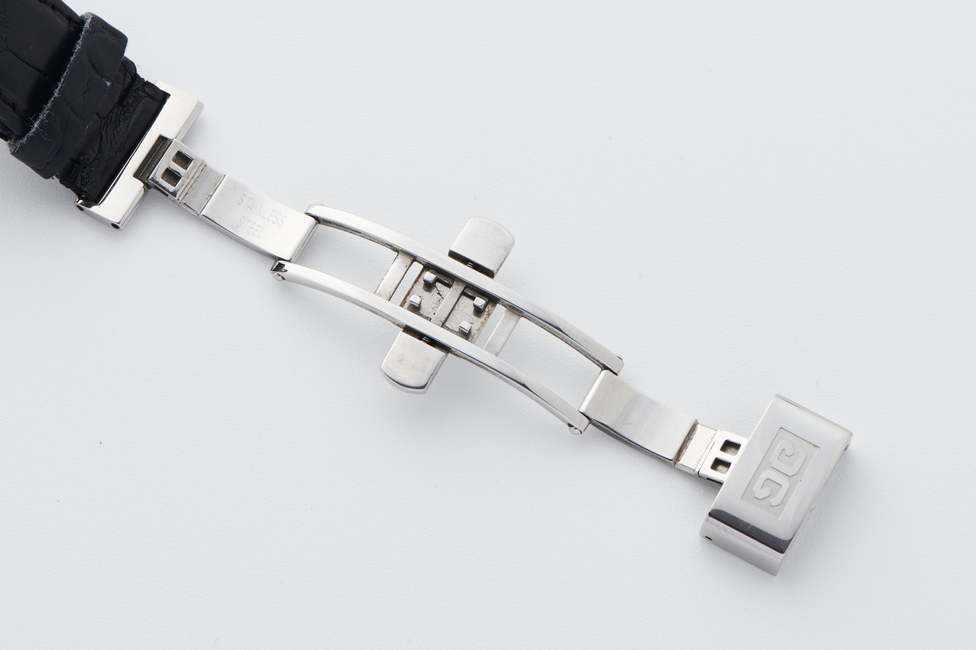 StrapBlack alligator leather strap with stainless steel butterfly deployant clasp